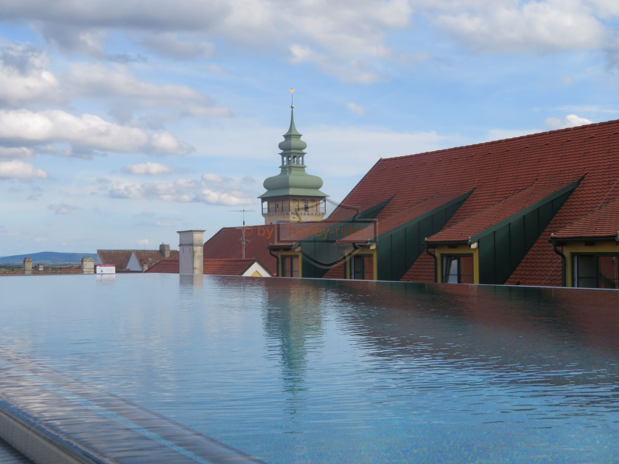 Nach einer kleinen Stärkung genoss ich auch noch den Pool auf dem Dach des Spa-Komplexes, wo man eine schöne Aussicht über die Stadt und das Land geniessen kann.