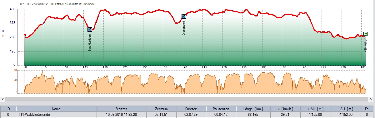 Alexander und sein Team stellten uns eine kurze (80 km) Rundtour durch das Waldviertel zusammen. Bis zum Schluss war ich der einzige, der die Tour fuhr. Alle andern genossen den Ruhetag bei Spatziergängen in, um und unter Retz herum, dem Wellnessprogramm des Hotels oder anderem.