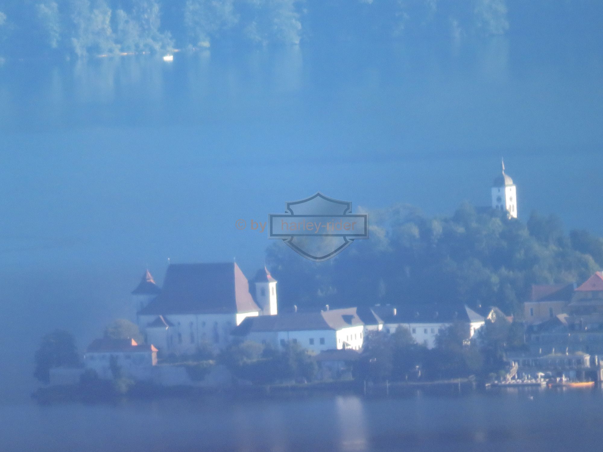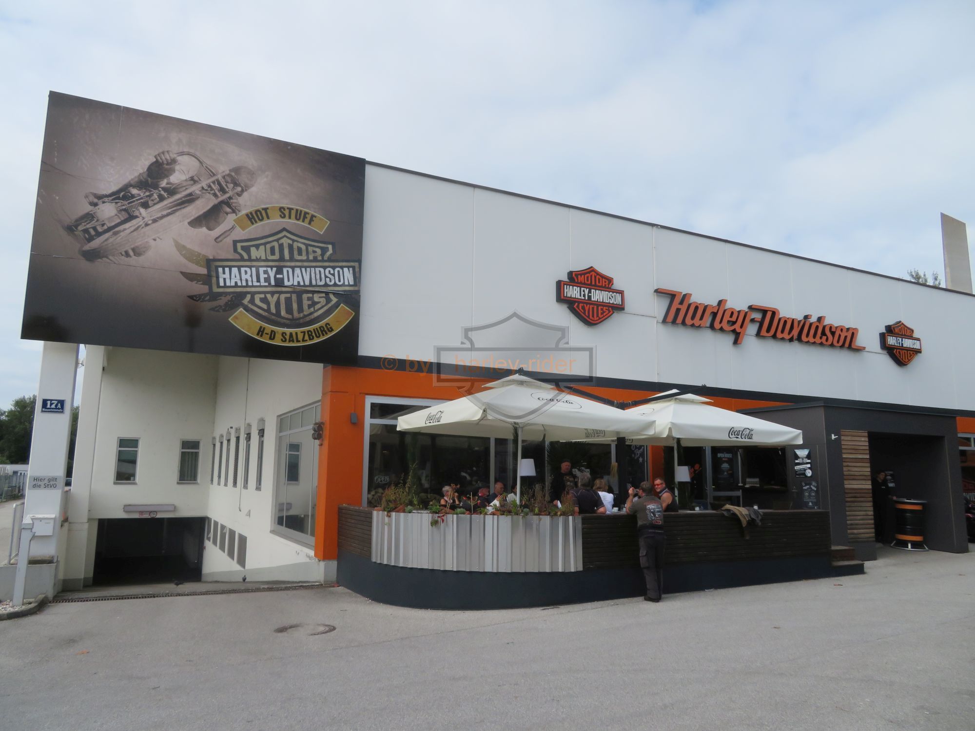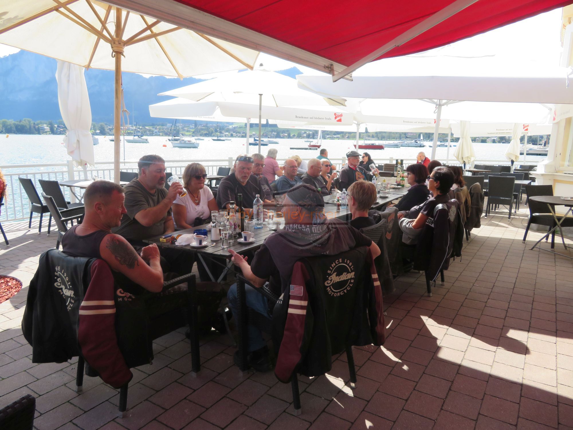 Die erste Tour hätte uns eigentlich zum Attersee, St. Gilgen und über den Pechauer Sattel nach Salzburg führen sollen. Doch der Regen in den 'Voralpen' zwang uns zu einer nördlichen Route auf der Bundesstrasse über Vöklabruck nach Salzburg. Dort fuhren wir zum Harleyhändler wo wir wieder auf den Rest der Gruppe stiessen. Die waren schon früher gefahren, denn Haris Maschine benötigte den ersten Service.