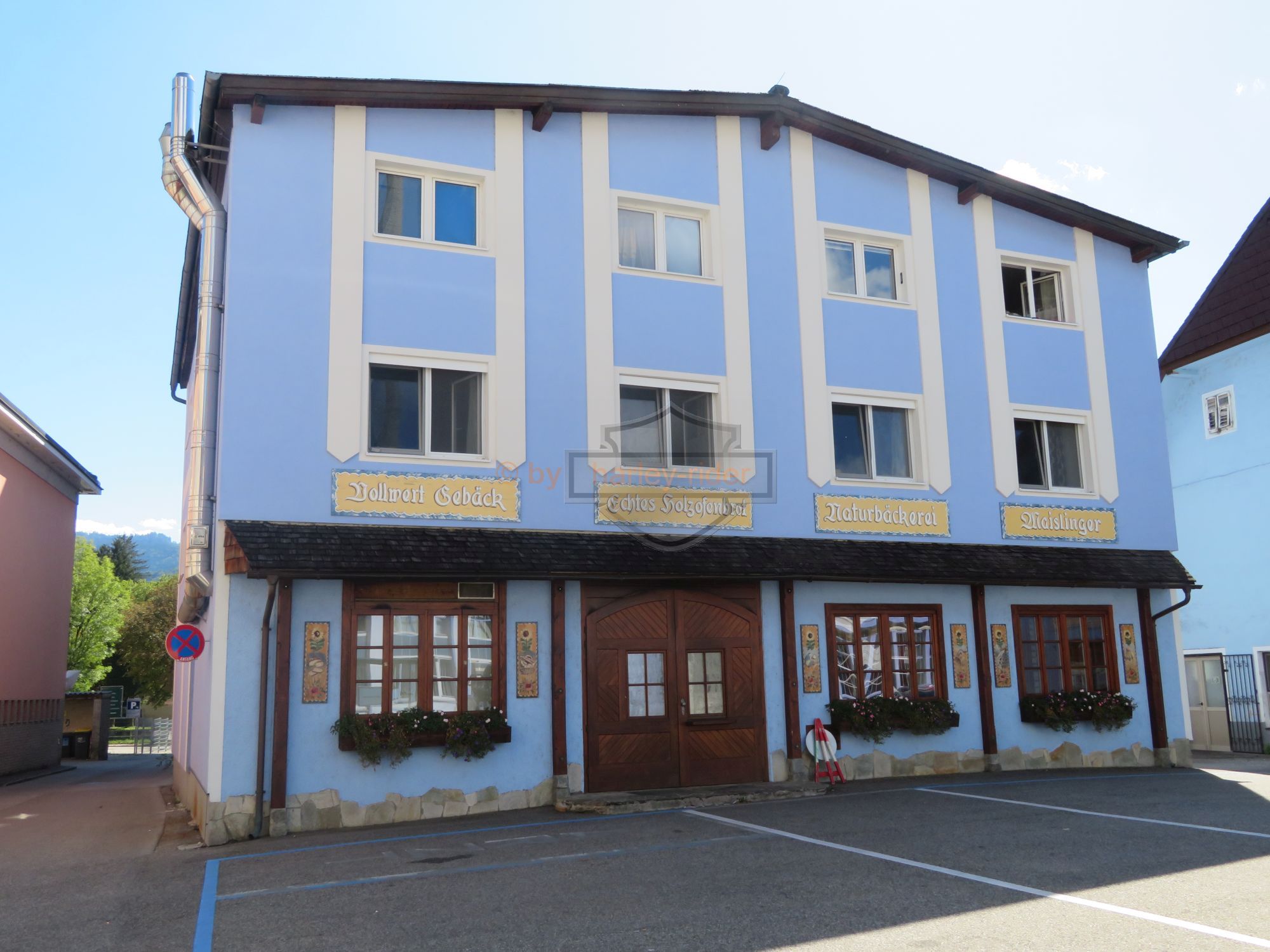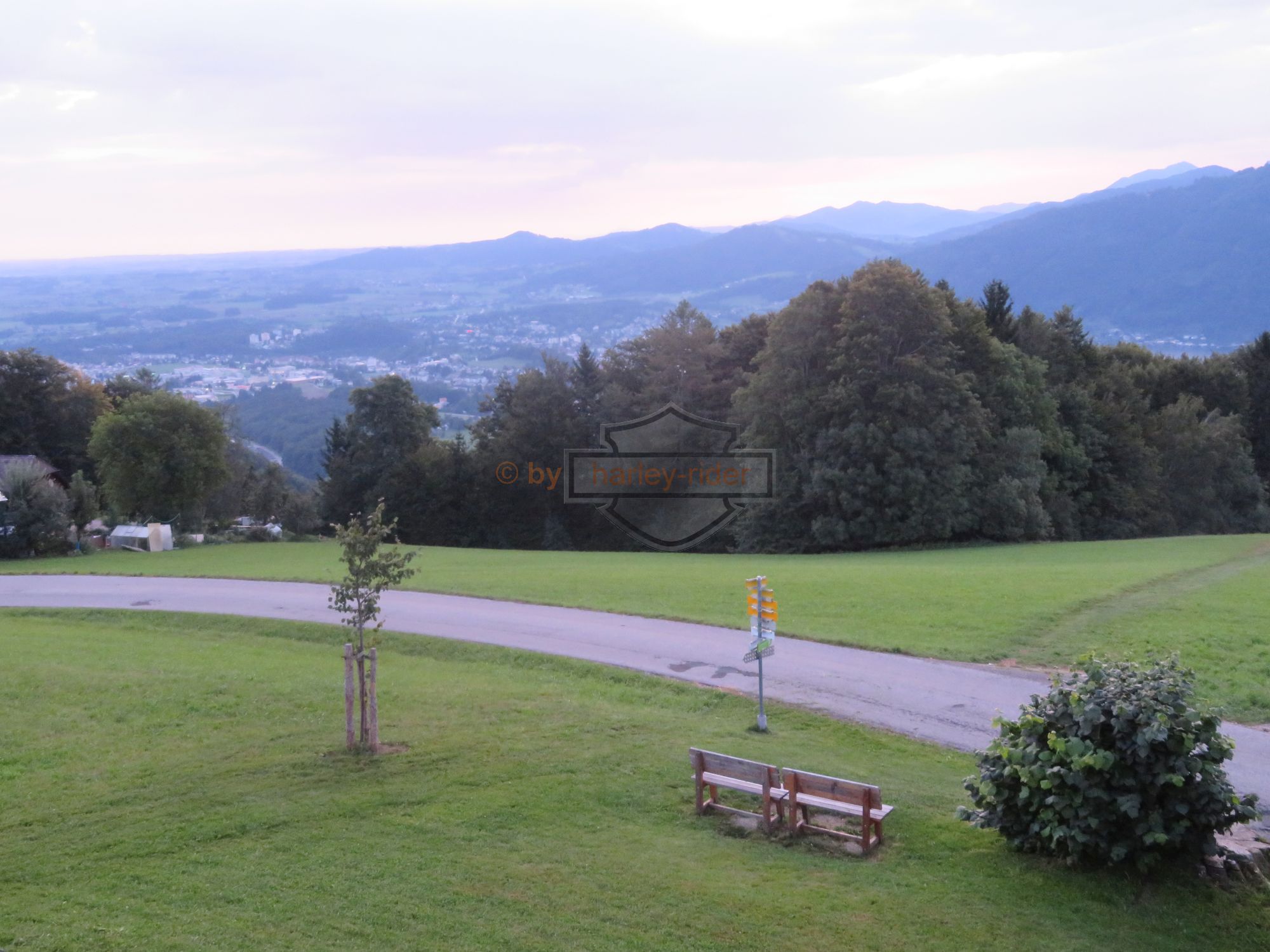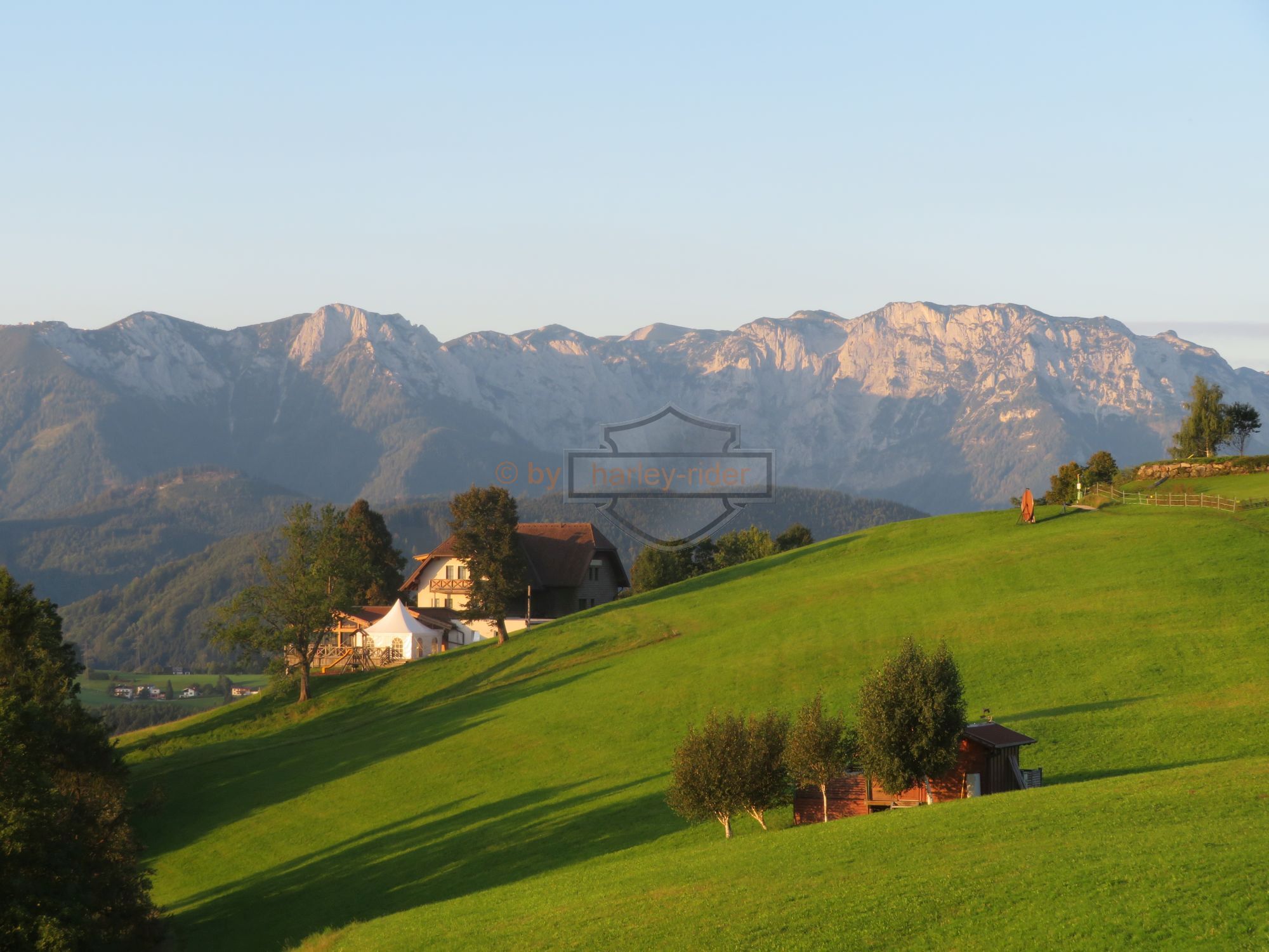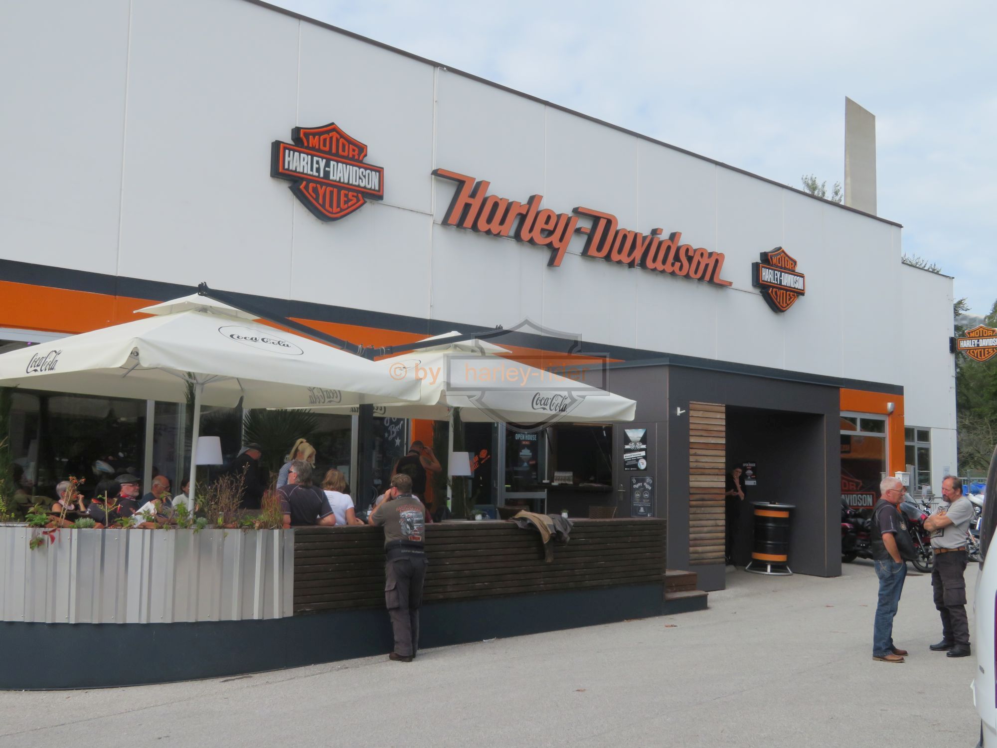 Die erste Tour hätte uns eigentlich zum Attersee, St. Gilgen und über den Pechauer Sattel nach Salzburg führen sollen. Doch der Regen in den 'Voralpen' zwang uns zu einer nördlichen Route auf der Bundesstrasse über Vöklabruck nach Salzburg. Dort fuhren wir zum Harleyhändler wo wir wieder auf den Rest der Gruppe stiessen. Die waren schon früher gefahren, denn Haris Maschine benötigte den ersten Service.
