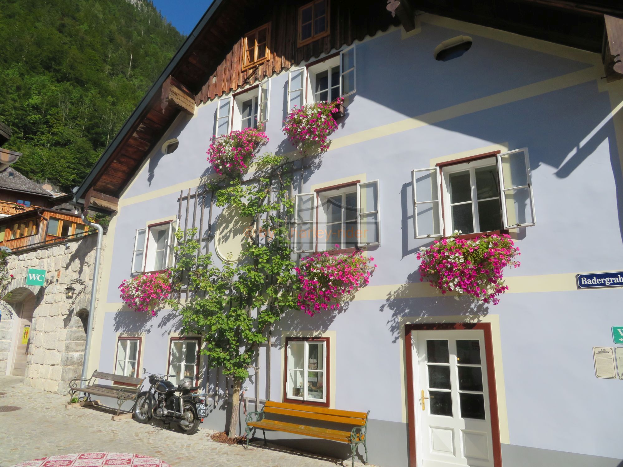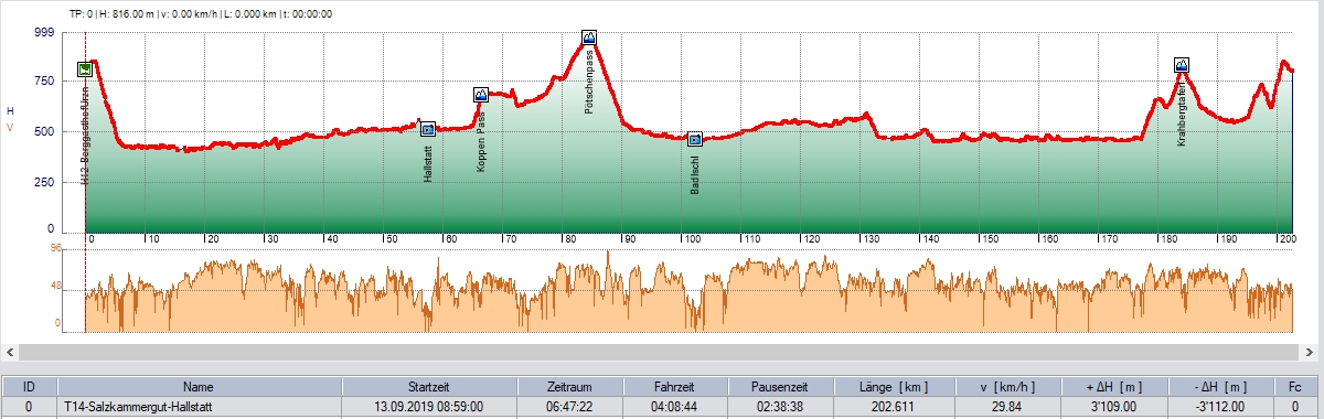 Am zweiten 'Ruhetag' fuhren wir bei schönstem Wetter zuerst nach Hallstatt. Aus zeit-, kaffee- und andern technischen Gründen fuhr ich direkt nach Hallstatt und verschob die Überfahrt vom Koppen- und Pötschenpass auf die Strecke zurück nach Bad Ischl.