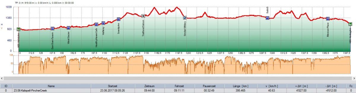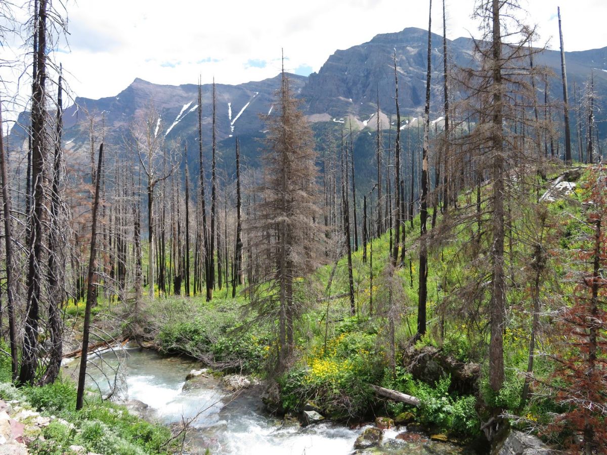 Heute steht ein weiteres High-Light unserer Tour auf dem Programm, der Glacier Nationalpark. Den Park durchfahren wir auf der 'going to the sun road' und über den Logan Pass. Gegen Mittag erreichen wir Many Glacier wo wir uns in der gleichnamigen Parklodge mit der spektakulären Aussicht verpflegen können. Leider hat es hier mit dem Übernachten nicht geklappt und so fahren wir aus dem Park hinaus und schon bald erreichen wir die kanâdische Grenze. Nach dem Grenzübertritt führt die Strecke nach Norden bis Pincher Creek. Falls es die Zeit erlaubt gibt es noch einen kurzen Abstecher an den Loon Lake im Waterton Lakes Nationalparkes, mit etwas Glück treffen wir hier auch auf Bisons.