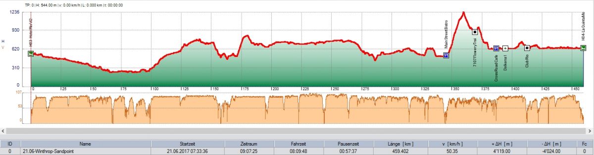 Weiter geht es Talauswärts zum Okanogan National Forest, welchen wir über den Sherman Pass durchfahren. Bei Kettle Falls überqueren wir den Columbia River und durchqueren den Colville National Forest. Bei Tiger treffen wir auf den Pend Oreille River, der für die nächsten 120 Kilometer unser ständiger Begleiter sein wird. Dieser Fluss mündet in den Lake Pend Oreille und an dessen Ufern liegt unser nächste Übernachtungsort.