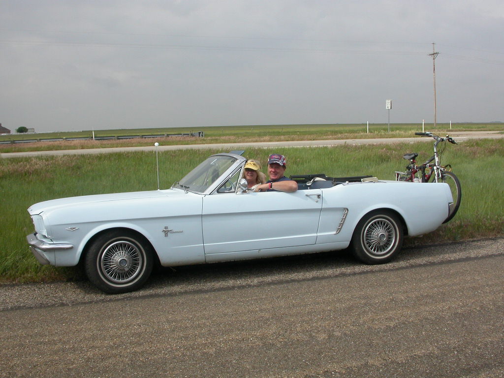 Auf dem Weg zum Midpoint der Route 66 in Adrian begegnete uns einmal mehr das hellblaue Cabriollet, welches schon seit Clinton immer wieder trafen. Sie waren uns voraus und schon in Adrian gewesen und nun auf der Rückfahrt nach Illinois.