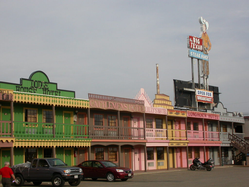 Quartier wurde heute auf der 'Big Texan Steak Ranch' bezogen und in diesem legendären Steakhouse stärkten wir uns dann auch entsprechend mit einem schönen Stück Fleisch. Auf das 72 Unzen (ca. 2 kg) Stück verzichteten wir wohlweisslich, aber so 16 Unzen hatten es auch schon in sich.
