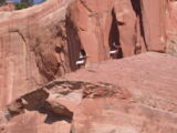 Einen kurzen Teil konnten wir entlang der roten Klippen der Interstate noch ausweichen, aber schon kurz danach endete die Route in Sackgassen, vor Sperrgittern oder führte als Gravel-Road (Schotter-, Naturstrasse...) weiter, so dass wir doch die Autobahn vorzogen.