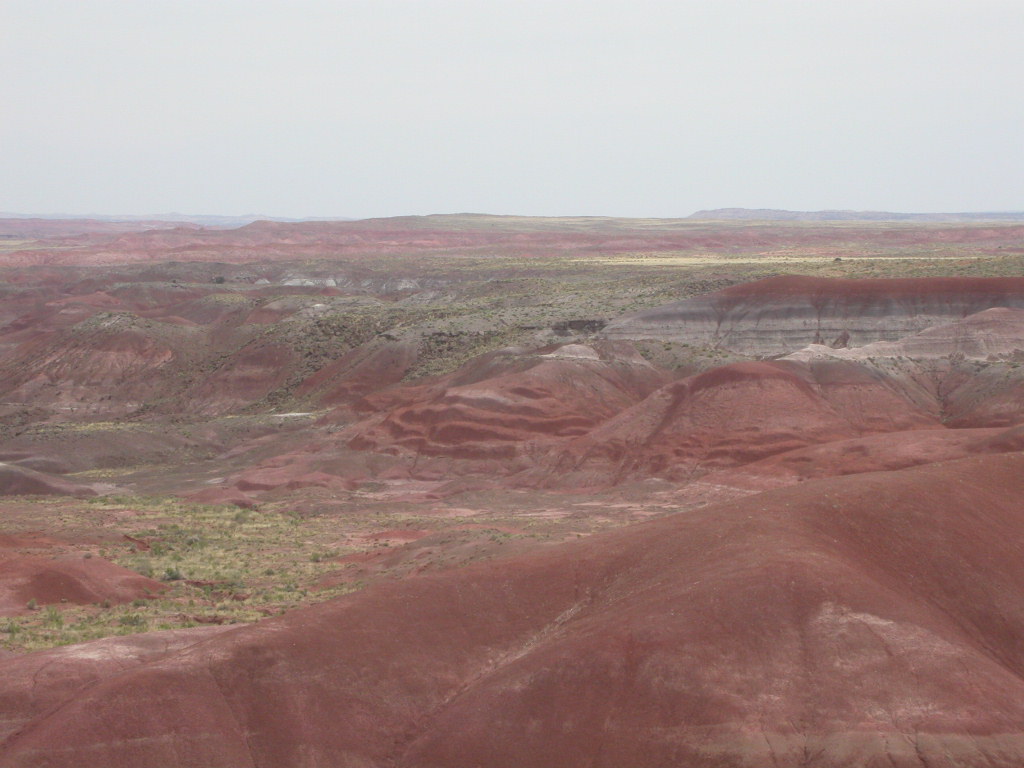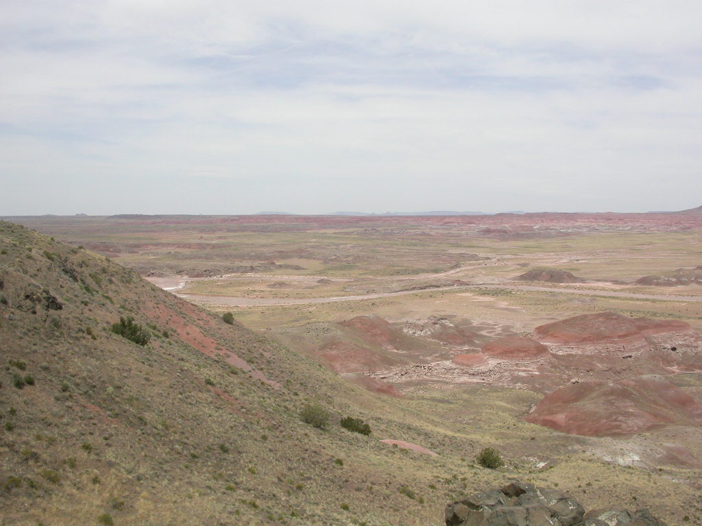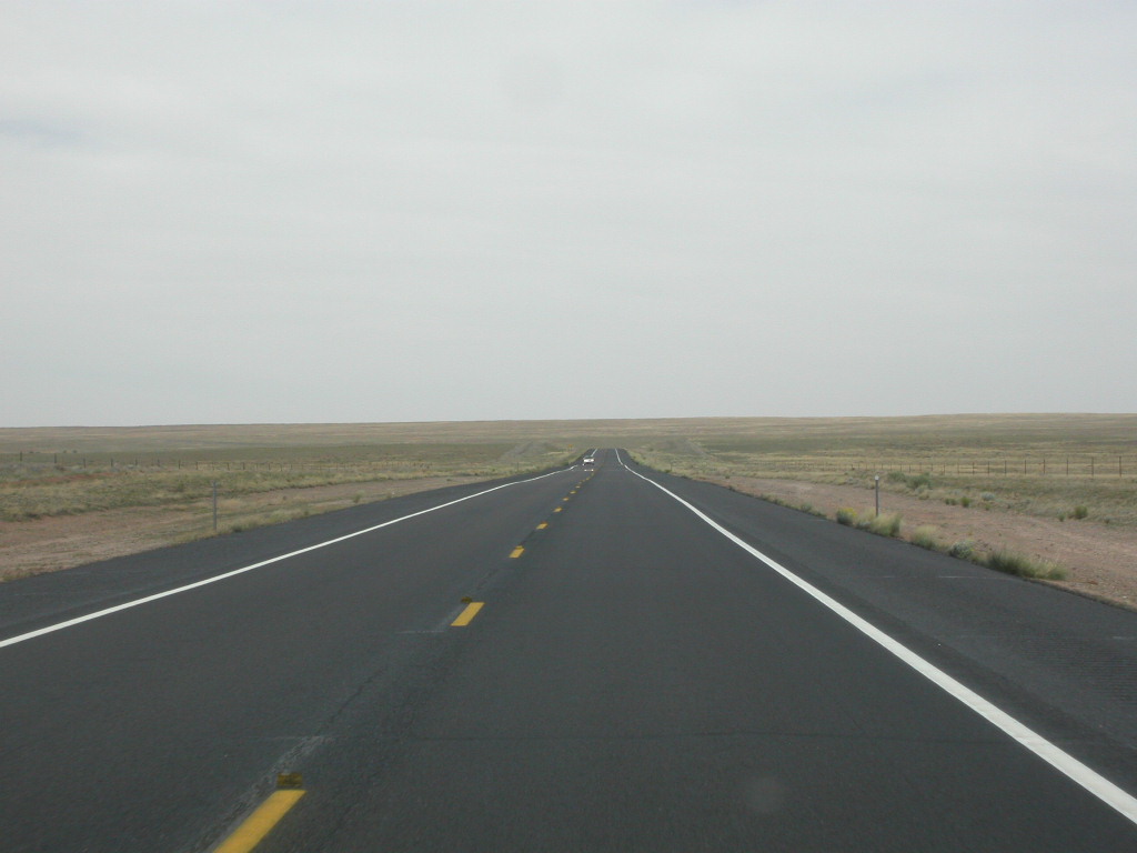 Ein erster Nationalpark Höhepunkt dieser Reise ist die Fahrt entlang der 'Painted Dessert' und durch den 'Petrified Forest'. Es ist schon erstaunlich, was hier in der flachen Prärie plötzlich für Zeitzeugen der Erdentwicklung zum Vorschein treten. Sogar ein kleines Mahnmal für die 'Mother-Road' ist auf der Strecke vorhanden.