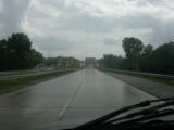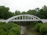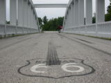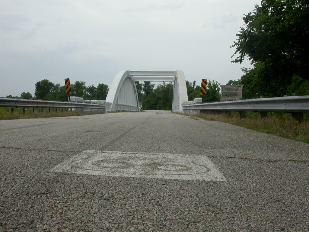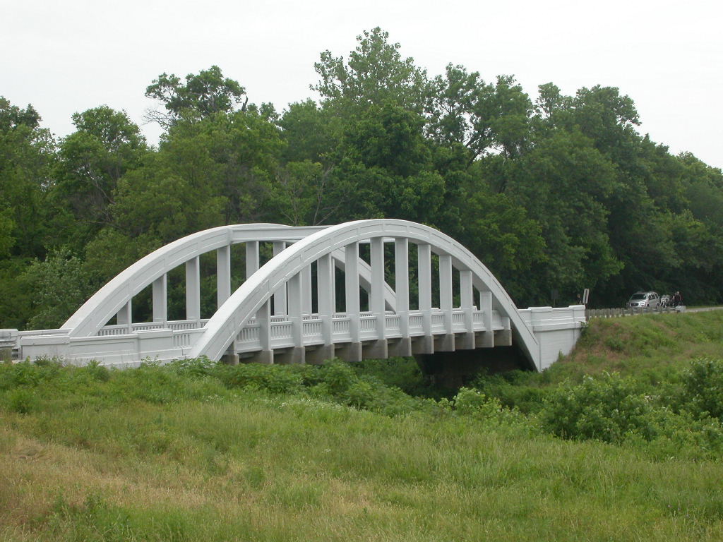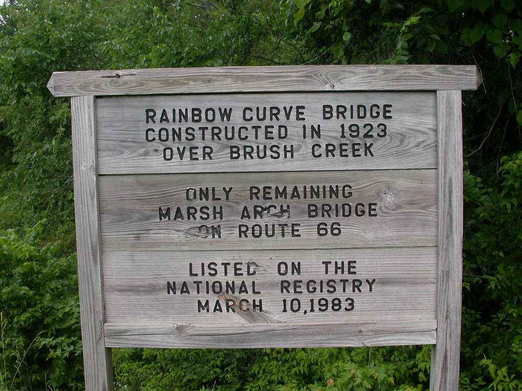 Schon kurz nach dem Frühstück führt uns die Route für 13.2 Meilen nach Kansas. Auf dieses kurze Stück Geschichte ist Kansas doch sehr stolz, so dass alle paar hundert Fuss die Strasse mit einer Art Kartoffelstempel beschrieben ist. Hier ist die Rainbow Curve Bridge über den Brush Creek ein Foto Pflichttermin.