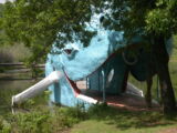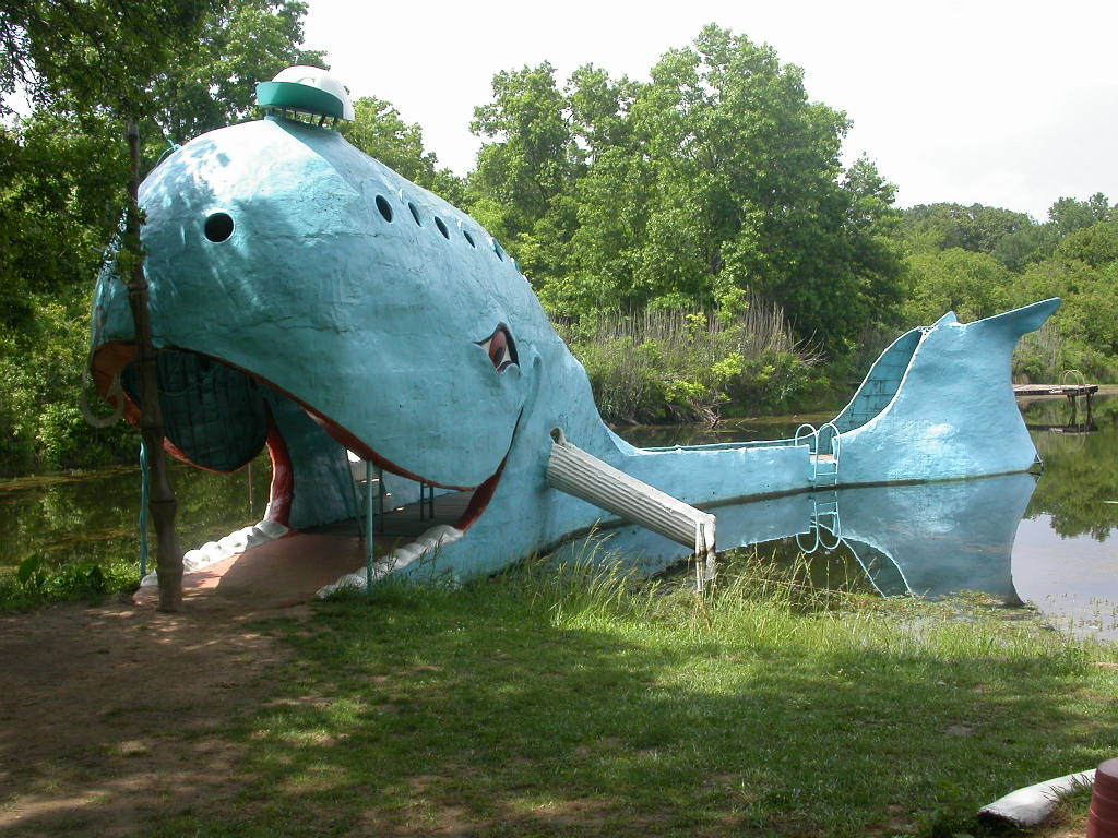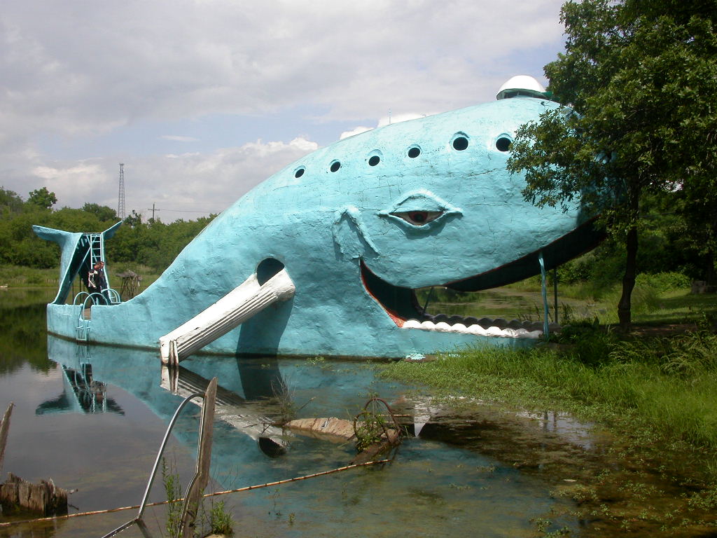 Der blaue Wal in Catoosa kurz vor der Ankunft in Tulsa wurde in den letzten Jahren renoviert und die alte Badeanstalt ist wieder zugänglich.