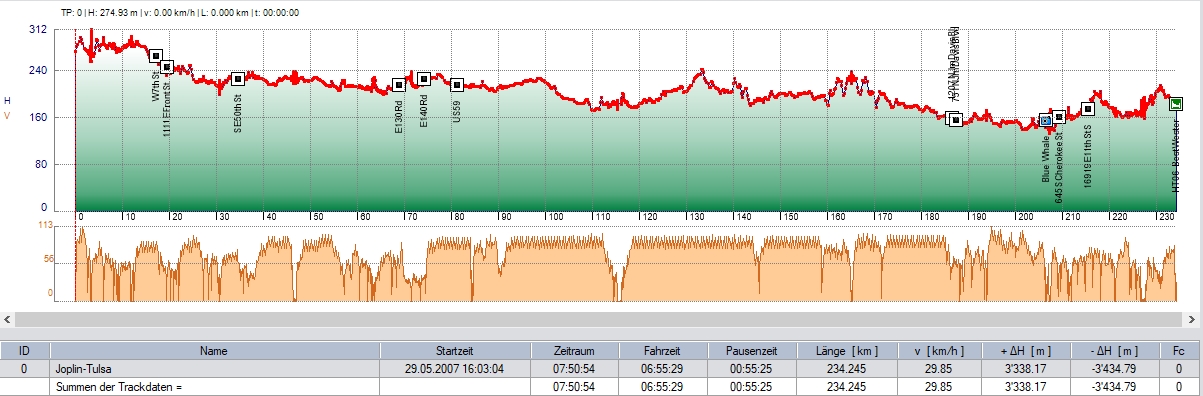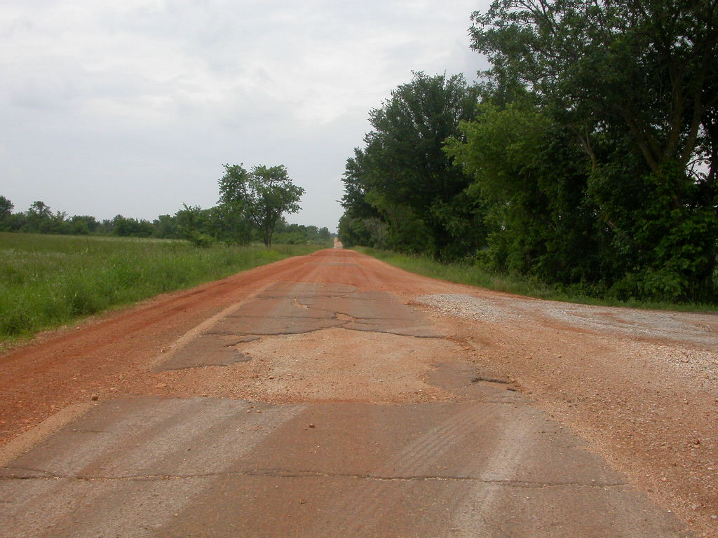 Kurz nach Miami, nicht das in Florida, zeigte sich, wieso die Route 66 eine Ost - West Verbindung und 'nur' in dieser Richtung befahren wurde. Das durchlöcherte und zum Teil nur noch aus Schotter bestehende Asphaltband dieses (ur)alten Teilstückes ist gerade mal eine Wagenbreite breit, also Kreuzen war da wohl fast unmöglich...