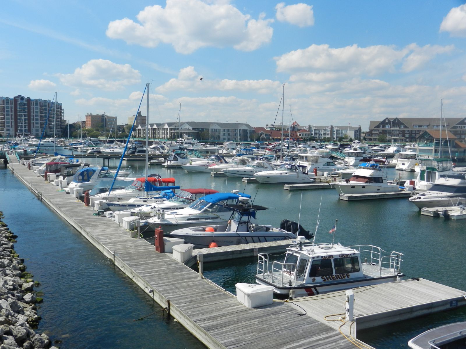 Kaum auf dem Highway zurück nach Chicago verspürten wir doch langsam Hunger und entschlossen uns an Stelle ener Kurzvisite von Chicago Downtown unsere kulinarischen Bedürnisse zu befriedigen. So fuhr ich vom Highway weg zum Lake Michigan, in der Hoffnung an dessen Ufern ein schönes Lokal zu finden. Leichter gesagt als getan, es dauerte doch seine Zeit bis wir im Hafen von Racine fündig wurden. Auf der Terrasse des Reef Point Marina Restaurants genossen wir ein wohlschmeckendes Essen.