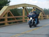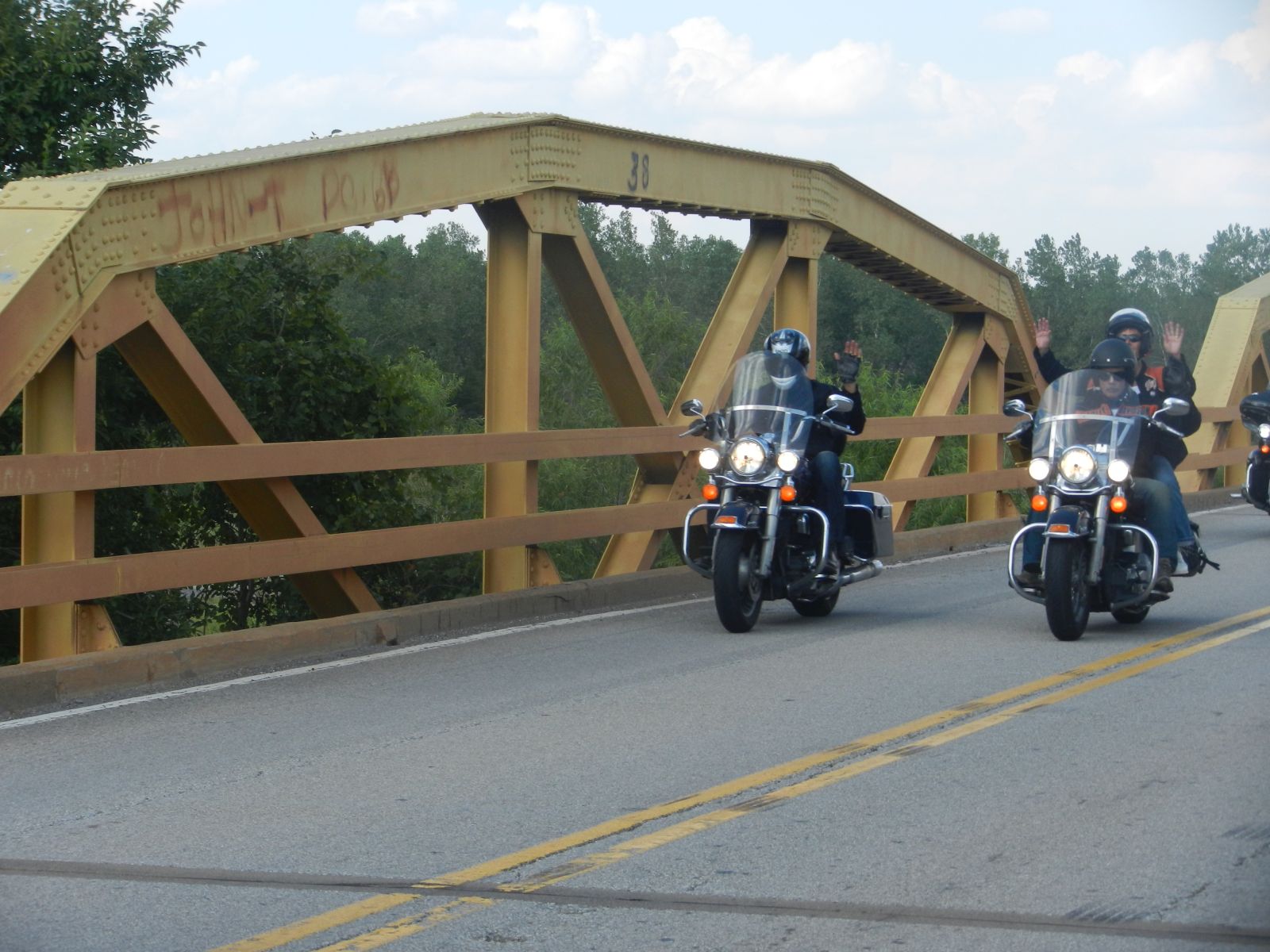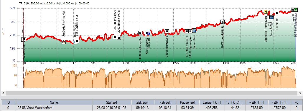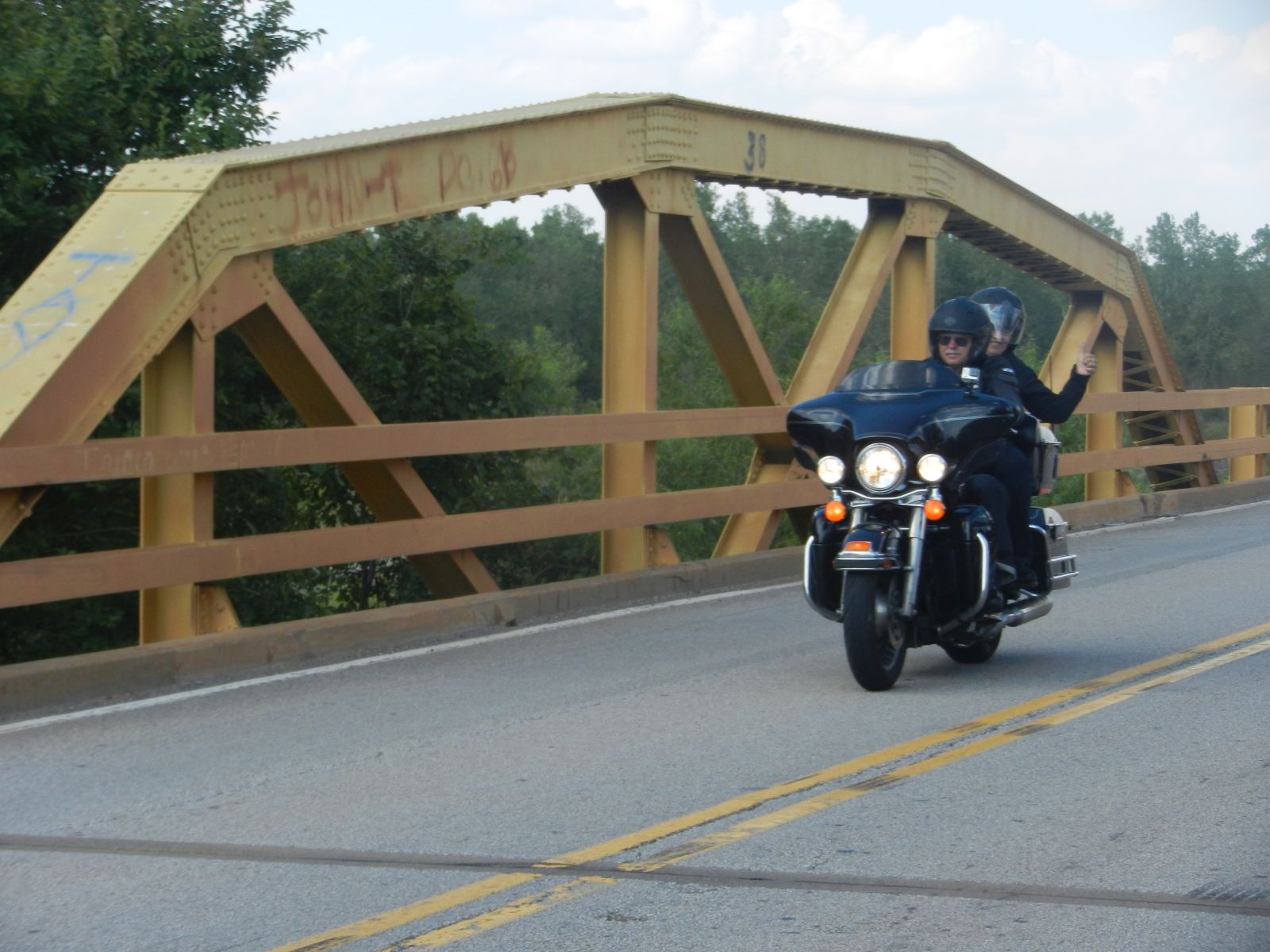 Kurz vor unserem Tagesziel überquerten wir den Canadian River über die Pony Bridge. Die Brücke besteht aus 38 Bögen, wurde 1933 errichtet und ist 1,2km lang. Damit ist sie eine der längsten und schönsten Brücken auf der Route 66. Nach der Brücke wurde der Strassenzustand der 66 schlechter und die gefahrene Geschwindigkeit höher, so dass ich es vorzog bei nächster Gelegenheit auf die Interstate zu wechseln um mit den Bikes mitzuhalten. Dadurch war ich kurz vor der Gruppe im Motel und konnte bereits das 'Happy Landing' vorbereiten.