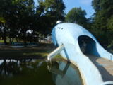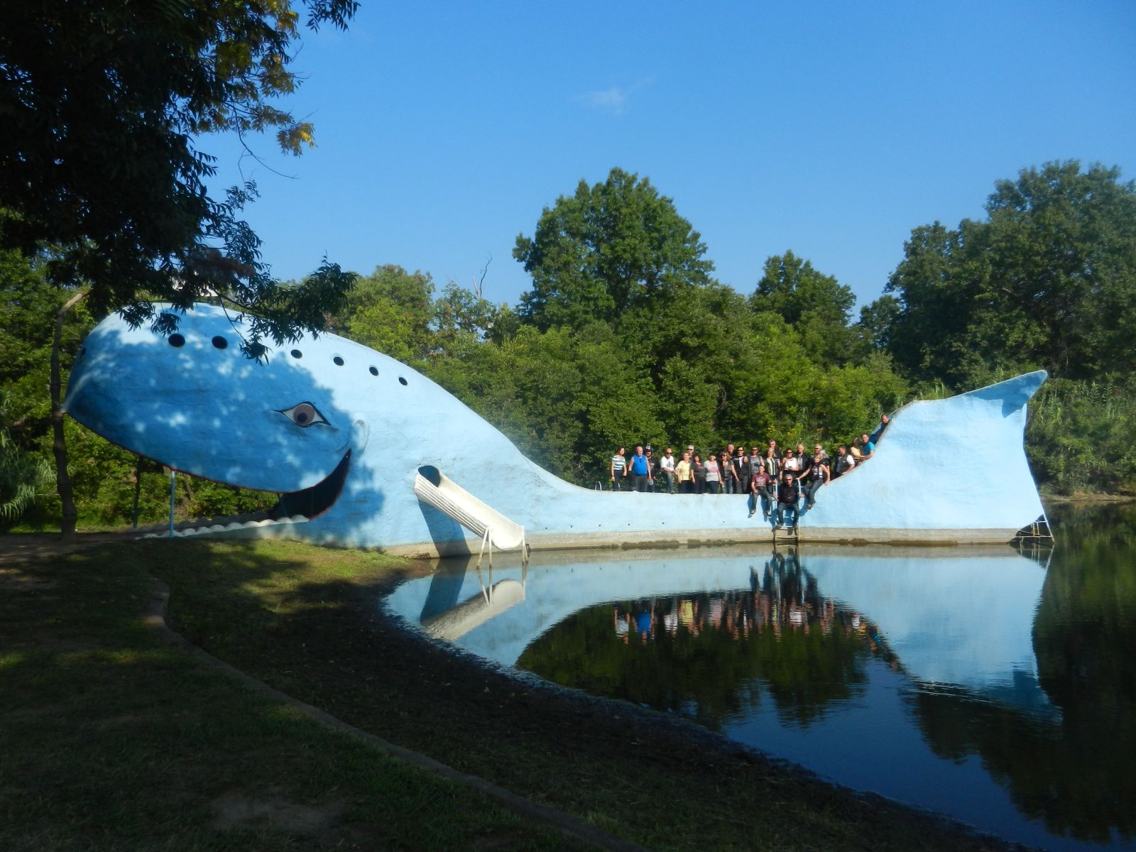 Heute Morgen waren in einzelnen Gesichtern noch Spuren des Rodeos zu sehen, die Reise ging aber trotzdem weiter. Als nächstes war ein Fotohalt in Cartoosa beim blauen Wal angesagt. Dieser Badesee ist heute nicht mehr in Betrieb aber doch eine schöne historische 66 Attraktion.