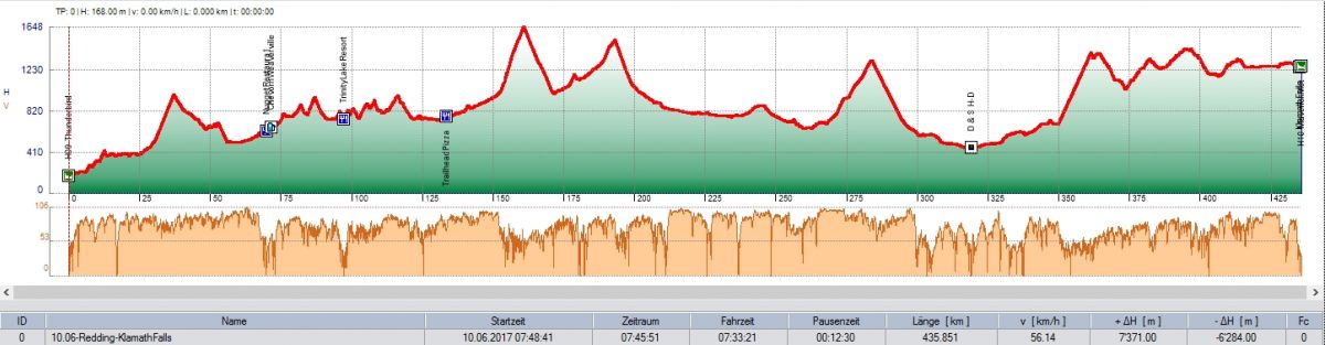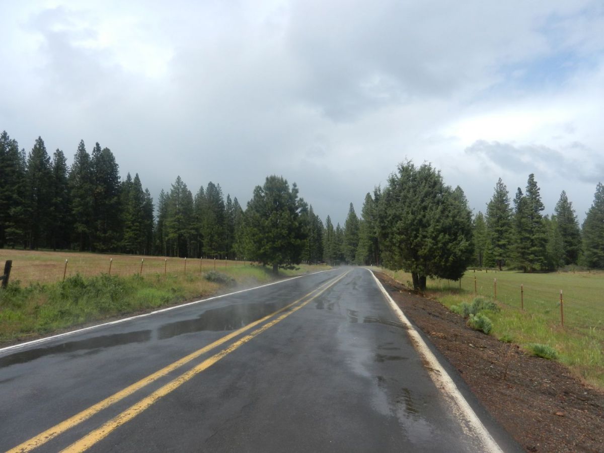 Da ich früher als geplant in der Nähe von Weed, wo man wieder den wolkenverhangenen Mt. Shasta sehen konnte, war, fuhr ich weiter nach Norden zum Harley Händler in Phoenix. Kurz nach dem ich nach Oregon kam begann es richtig zu schütten, aber auf der Interstate konnte ich natürlich schlecht anhalten und wurde dementsprechend durchnässt.
