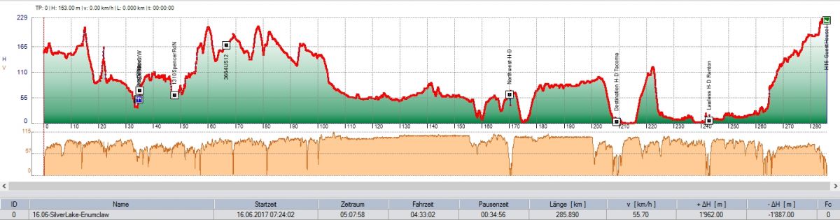 Da es gegen Westen heiterer aussah, entschloss ich mich die Fahrt durch den Nationalpark abzubrechen und gegen Westen aus den Bergen hinaus zu fahren. Aus der beabsichtigten Fahrt entlang des Mt. Rainiers wurde dann halt eine Einkaufstour über die I5 zu den Harley-Händlern.
