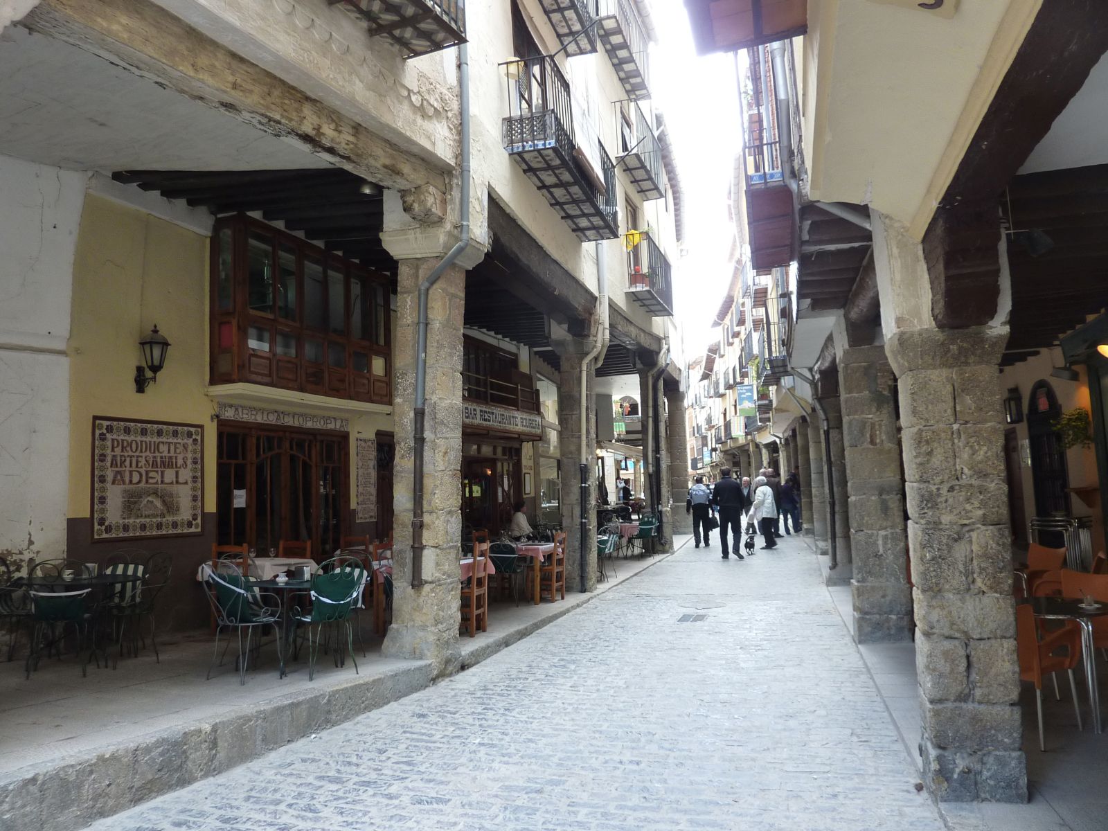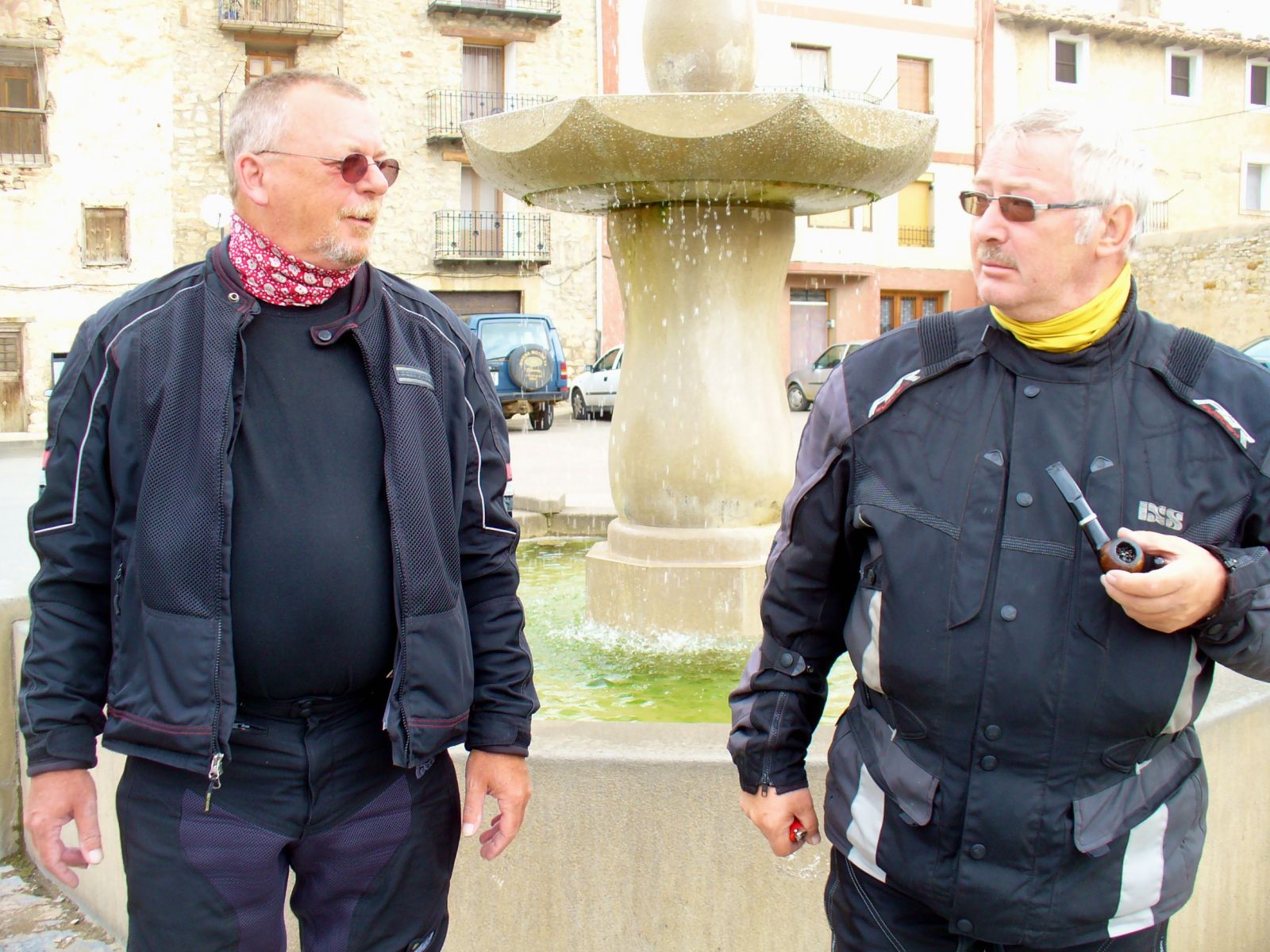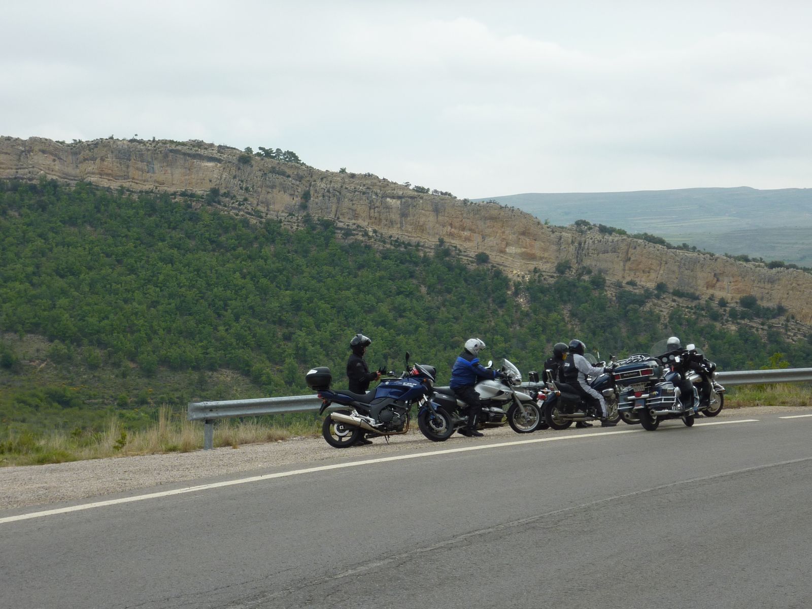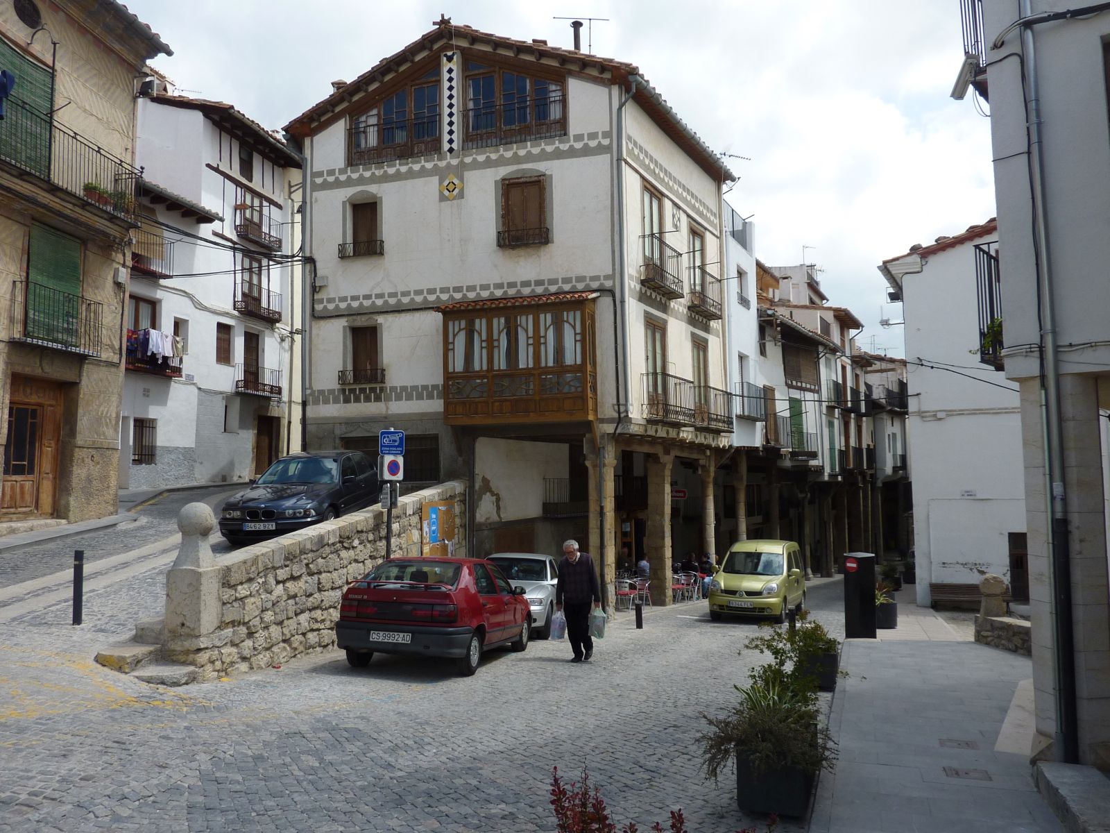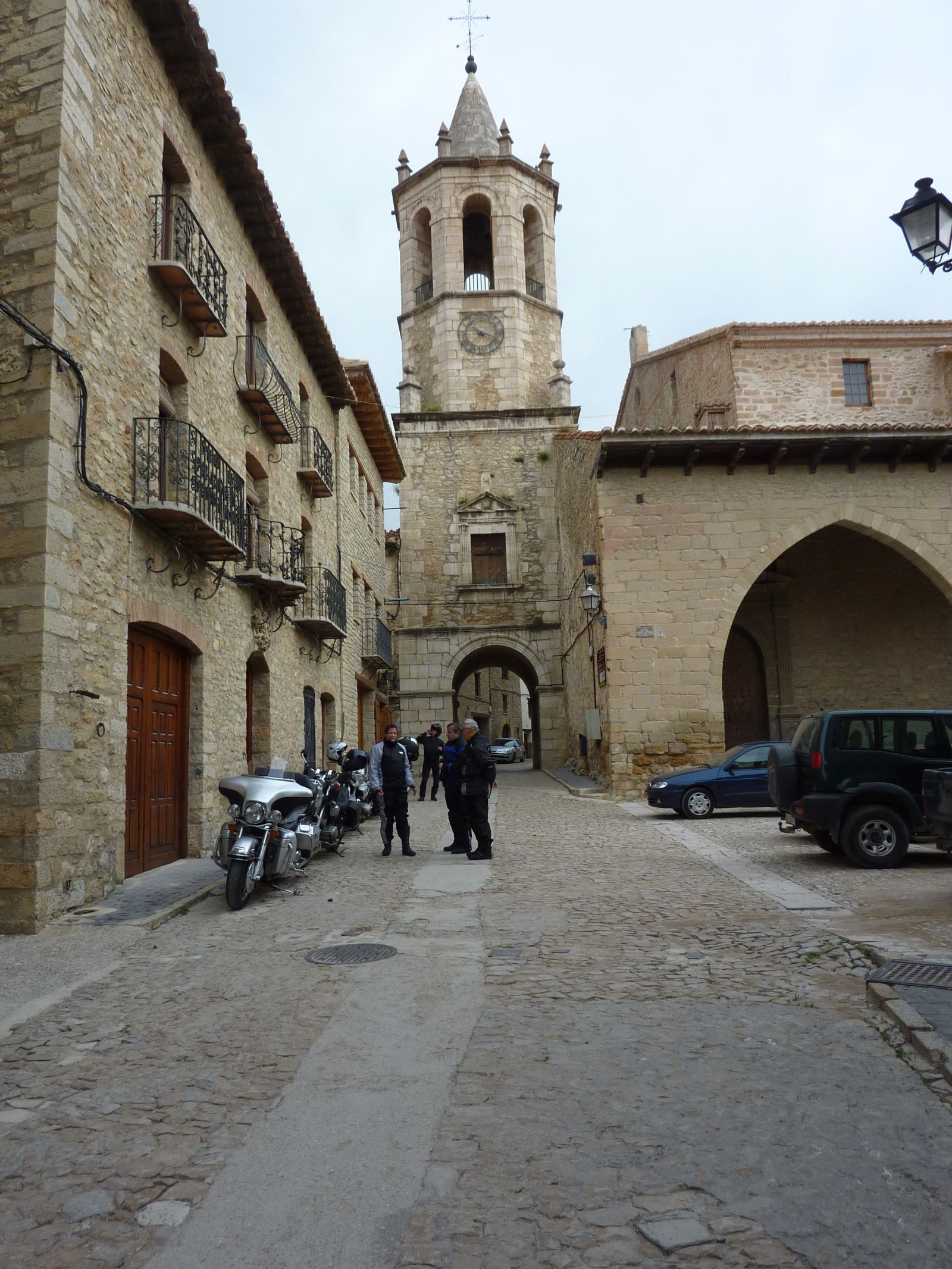 Heute Morgen war erstmal noch Regenkleidung angesagt und danach fuhren wir durch die schmalen, verwickelten und steilen Gässchen vom Hotel auf die Strasse hinunter. Die Fahrt durch die Sierra de Gudar führteüber 4 Pässe bis zu unserem Kaffeehalt in Cantavieja. Vor dem Kaffeehalt fuhren wir aber noch in die Altstadt zur Kirche und Burg hinauf um ein paar Fotos zu schiessen.