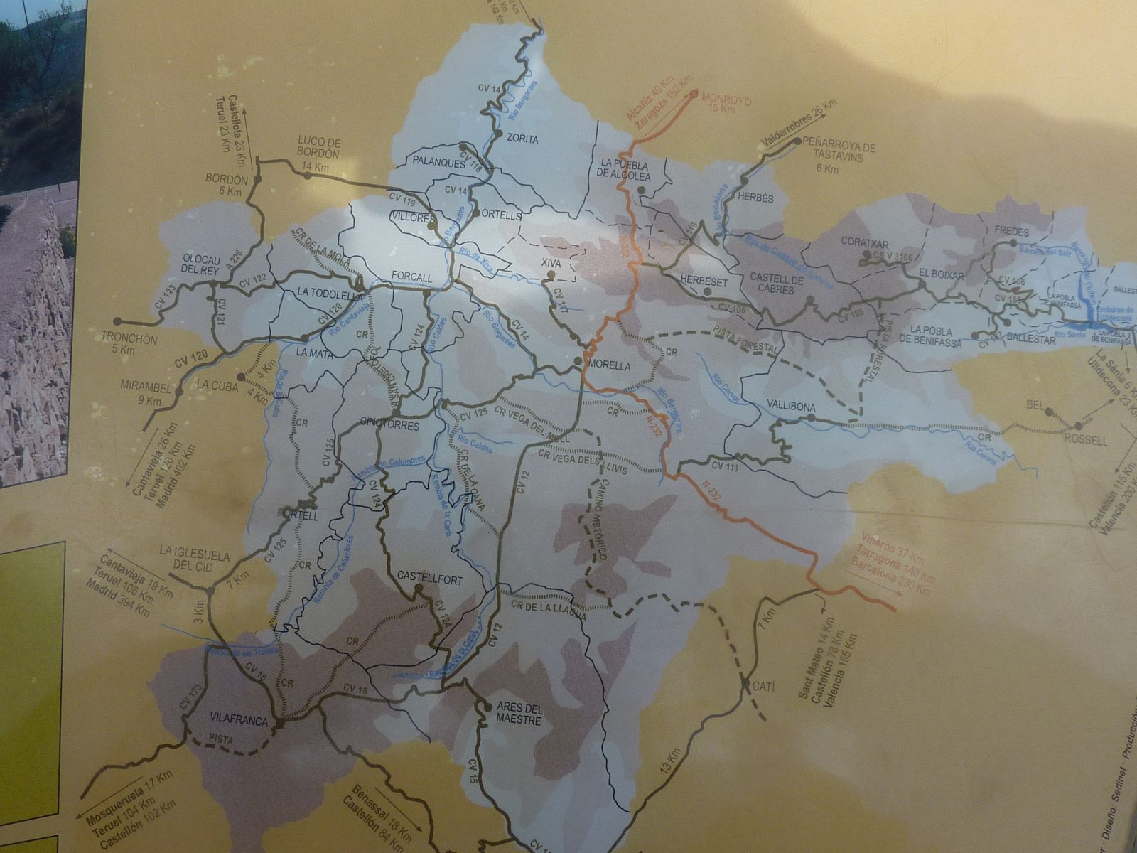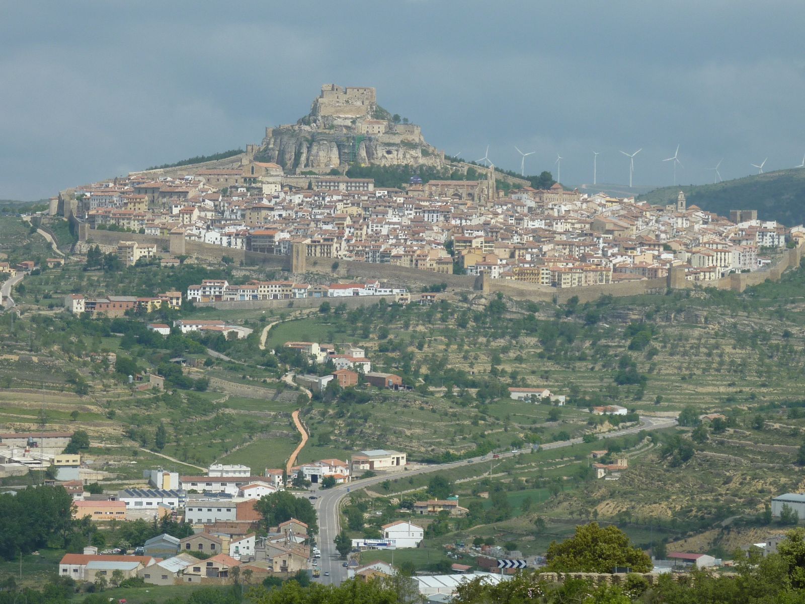 Danach ging es weiter in die Berge von 'El Maestrat'. Plötzlich tauchte der Burghügel von Morella auf. Bei einem Aussichtspunkt wurden erste Fotos von diesem markanten Hügel mit seiner kompakt bebauten Stadt und der sehr gut erhaltenen Stadtmauer geschossen. Wir beschlossen dort für eine Besichtigung inkl. Mittagsrast anzuhalten.