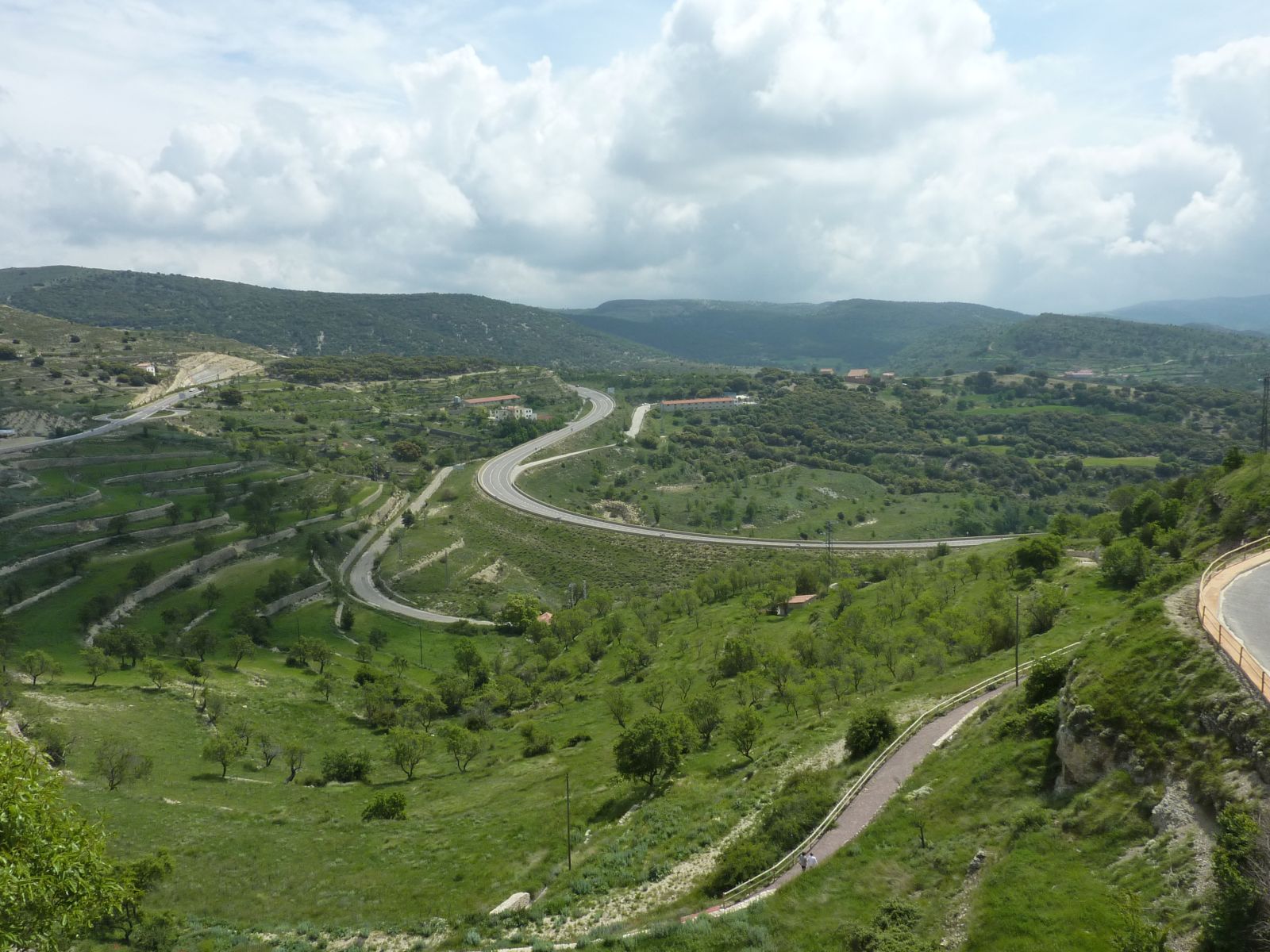 Nach diesem Halt sollte es gemäss Karte weiter kurvenreich durch die Berge gehen. Hier wurde aber vor kurzem gebaut und die neue Strasse zog recht begradigt über Brücken und durch Tunnels an den kleinen Ortschaften vorbei. Auf unserem Weg an den Rio Ebro und dem Castell de Miravet machten wir noch in Valderrobres einen kurzen Halt.