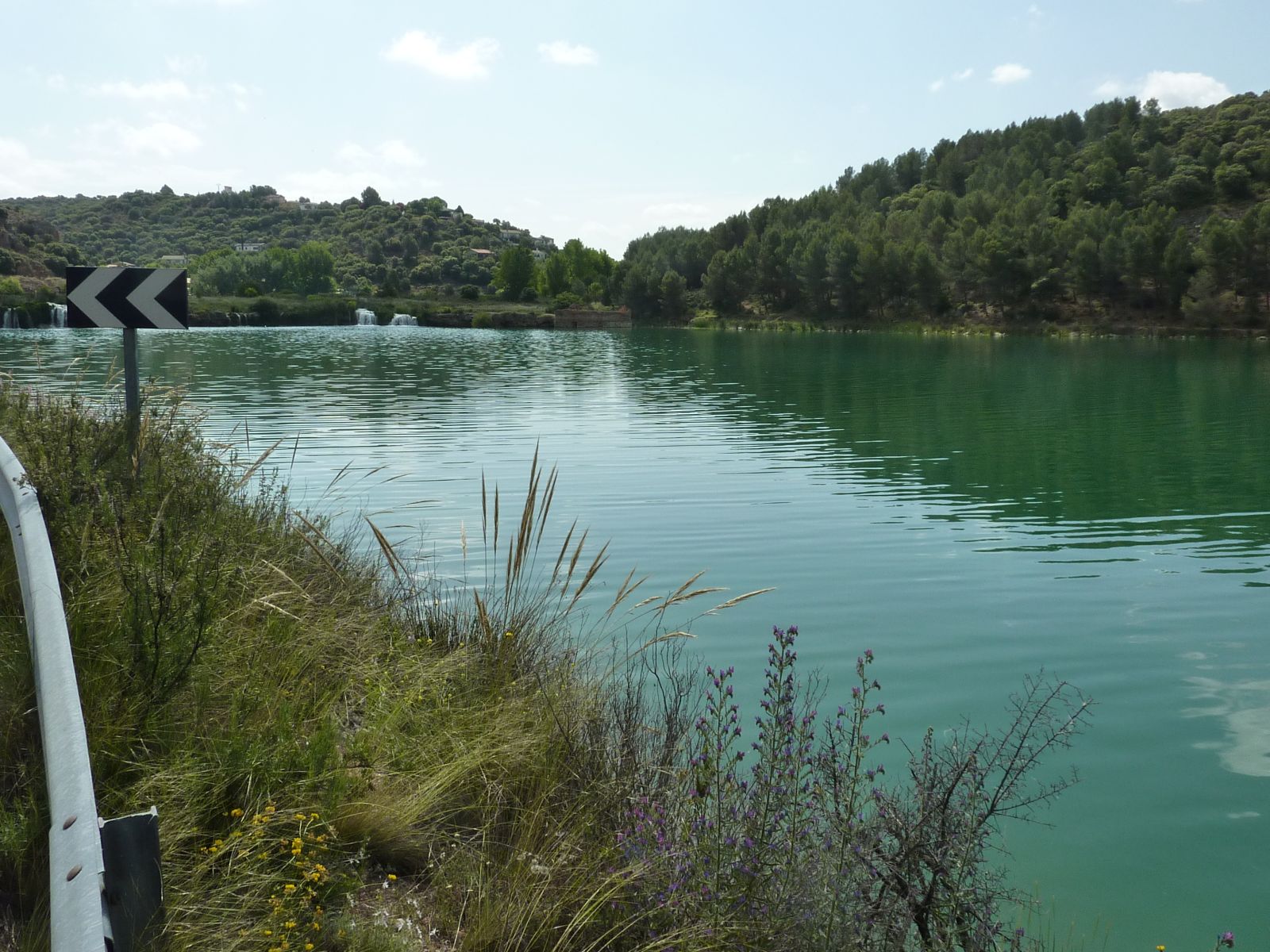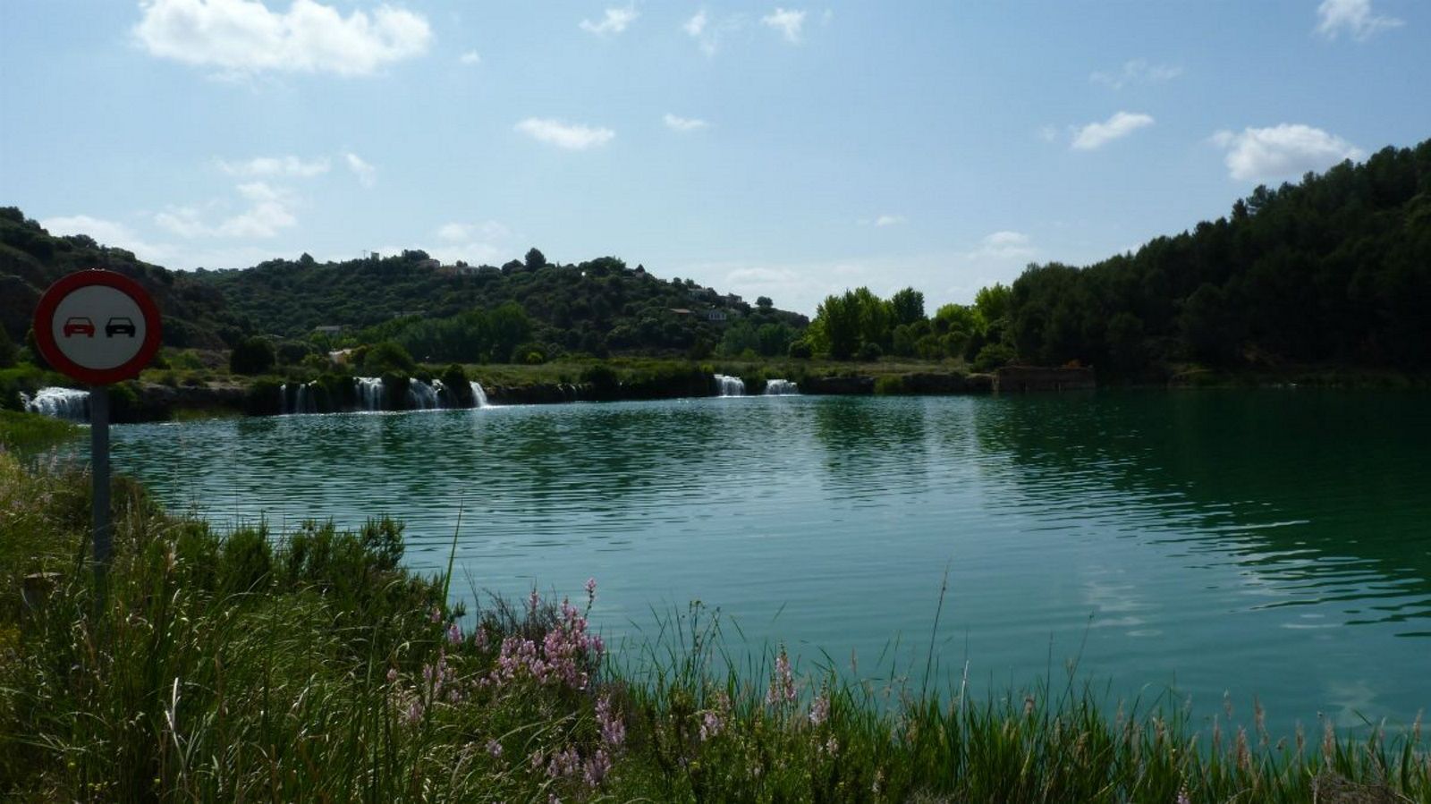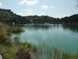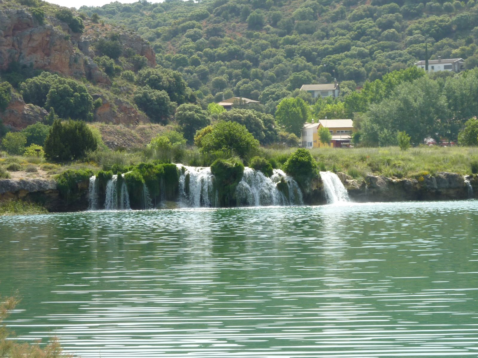 Nach einem Halt in Alhambra, nicht zu verwechseln mit der Alhambra von Granada, erreichten wir den Naturpark 'Lagunas de Ruidera'. Hier fand sich eine sehr schöne Landschaft mit der Lagune und dem angrenzenden Ufer, sowie einem natürlichem Damm, der das Wasser staute. Über diesen Damm floss das Wasser in kleinen Wasserfällen in die untenliegende Lagune.