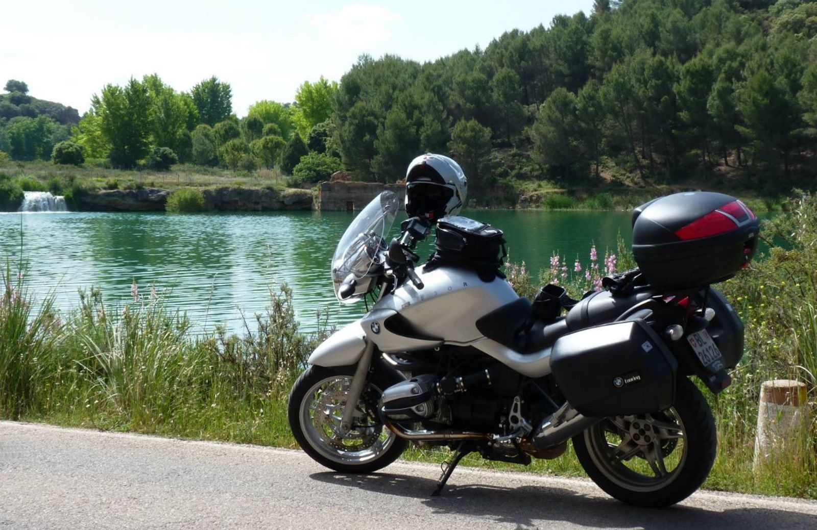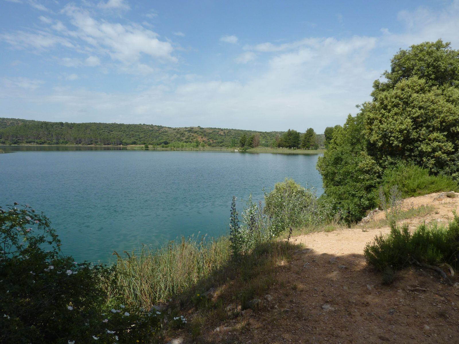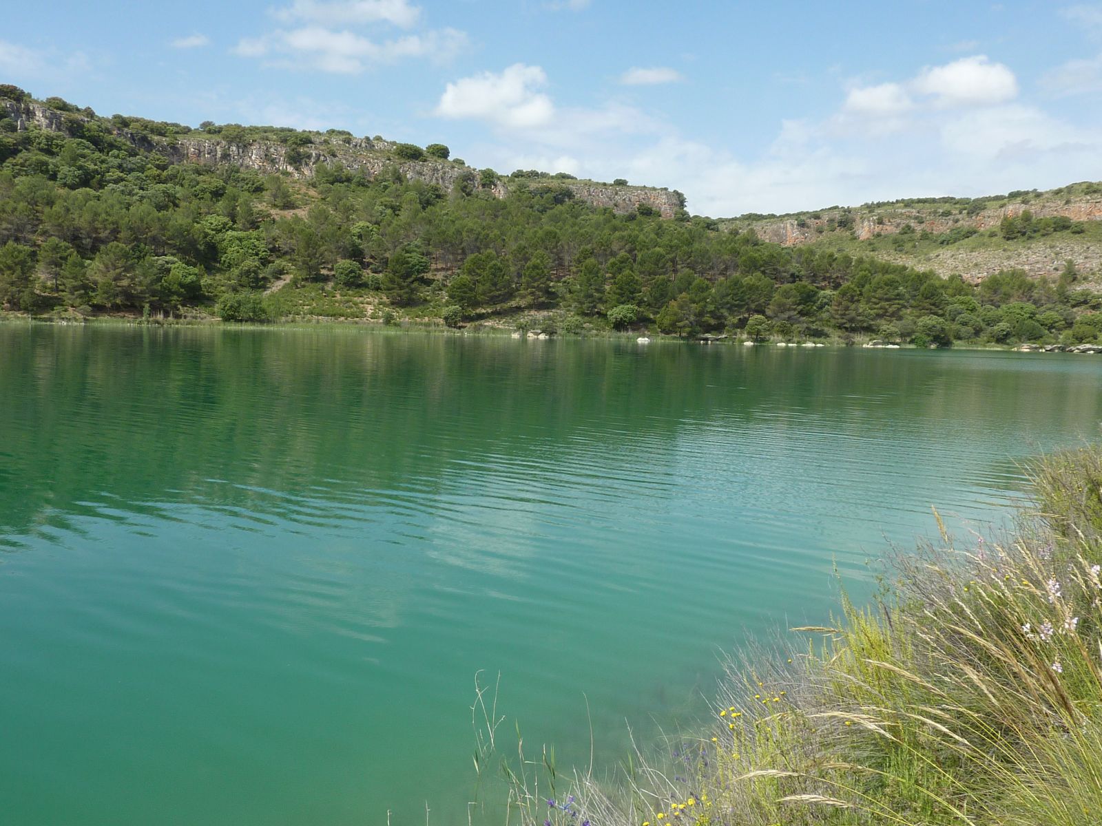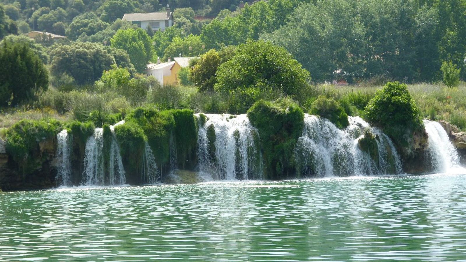 Nach einem Halt in Alhambra, nicht zu verwechseln mit der Alhambra von Granada, erreichten wir den Naturpark 'Lagunas de Ruidera'. Hier fand sich eine sehr schöne Landschaft mit der Lagune und dem angrenzenden Ufer, sowie einem natürlichem Damm, der das Wasser staute. Über diesen Damm floss das Wasser in kleinen Wasserfällen in die untenliegende Lagune.