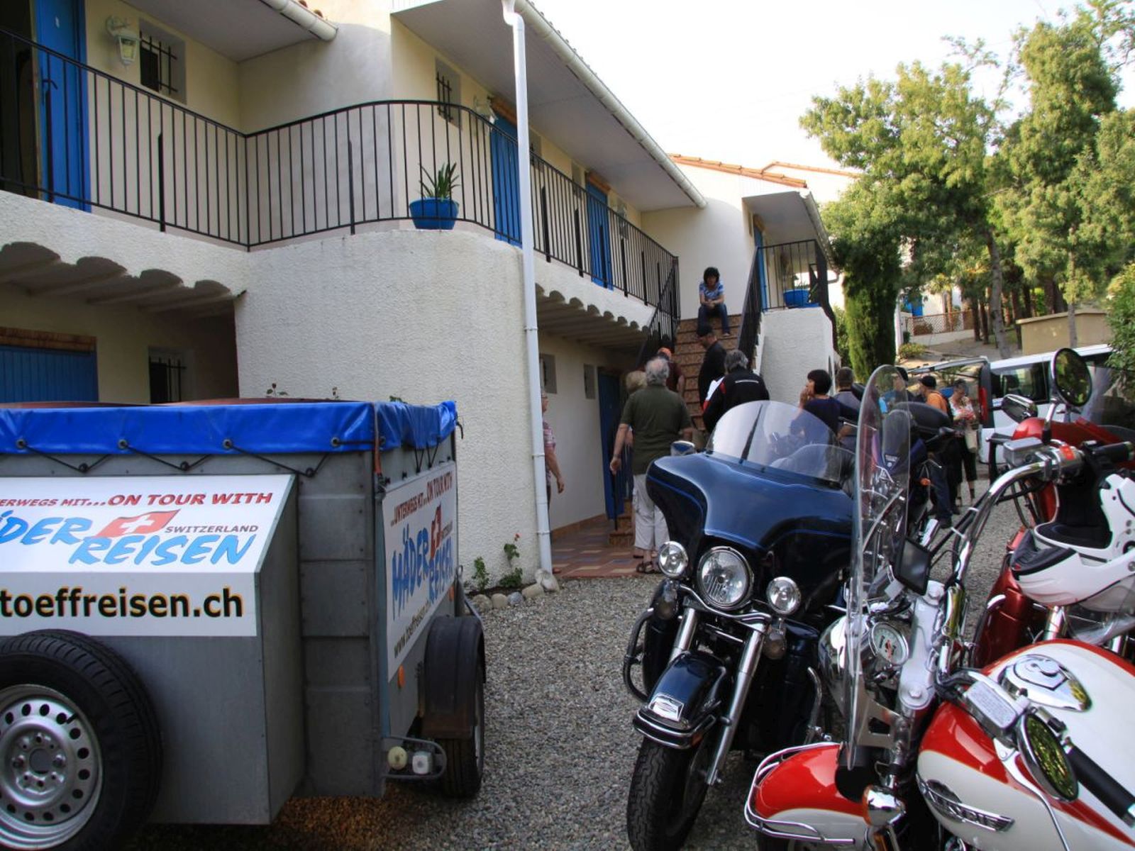 Nachdem wir Narbonne umfahren hatten kamen wir auf die grüne 'bis'-Strasse zwischen Narbonne und Perpignan. Hier fühlte man sich zwischendurch wie im wilden Westen, die Strasse zieht kurvenreich entlang von kleinen Bächen, über Hügel und durch Täler gegen die Pyrenäen und unserem Tagesziel, Treffpunkt und Tourbeginn Céret. Das etwas abseits und erhöht gelegene Hotel 'La Terrasse au soleil' fanden wir dank dem Navi auf Anhieb.