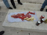 Heute Morgen gab es doch einen erheblichen Stau beim Frühstücksbuffet. Bei 30 Leuten, die gleichzeitig frühstücken wollten, war das Hotel mit seiner Infrastruktur leicht überfordert. Zudem versagte zu Beginn noch die Kaffeemaschine ihren Dienst und auch die war zu klein dimensioniert für so viele Leute. Da habe ich ja zu Hause eine leistungsfähigere Kaffeemaschine. Die Stühle gingen nach und nach auch aus, so dass der Frühstücksraum in Foyer des Hotels auf die Salontische und Polsterstühle erweitert wurde.