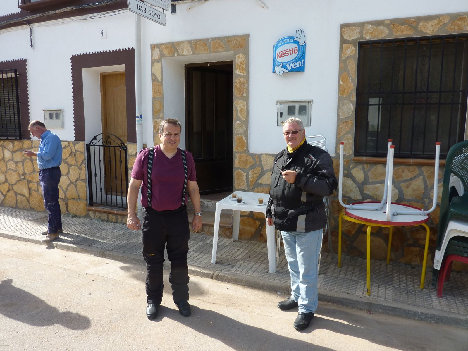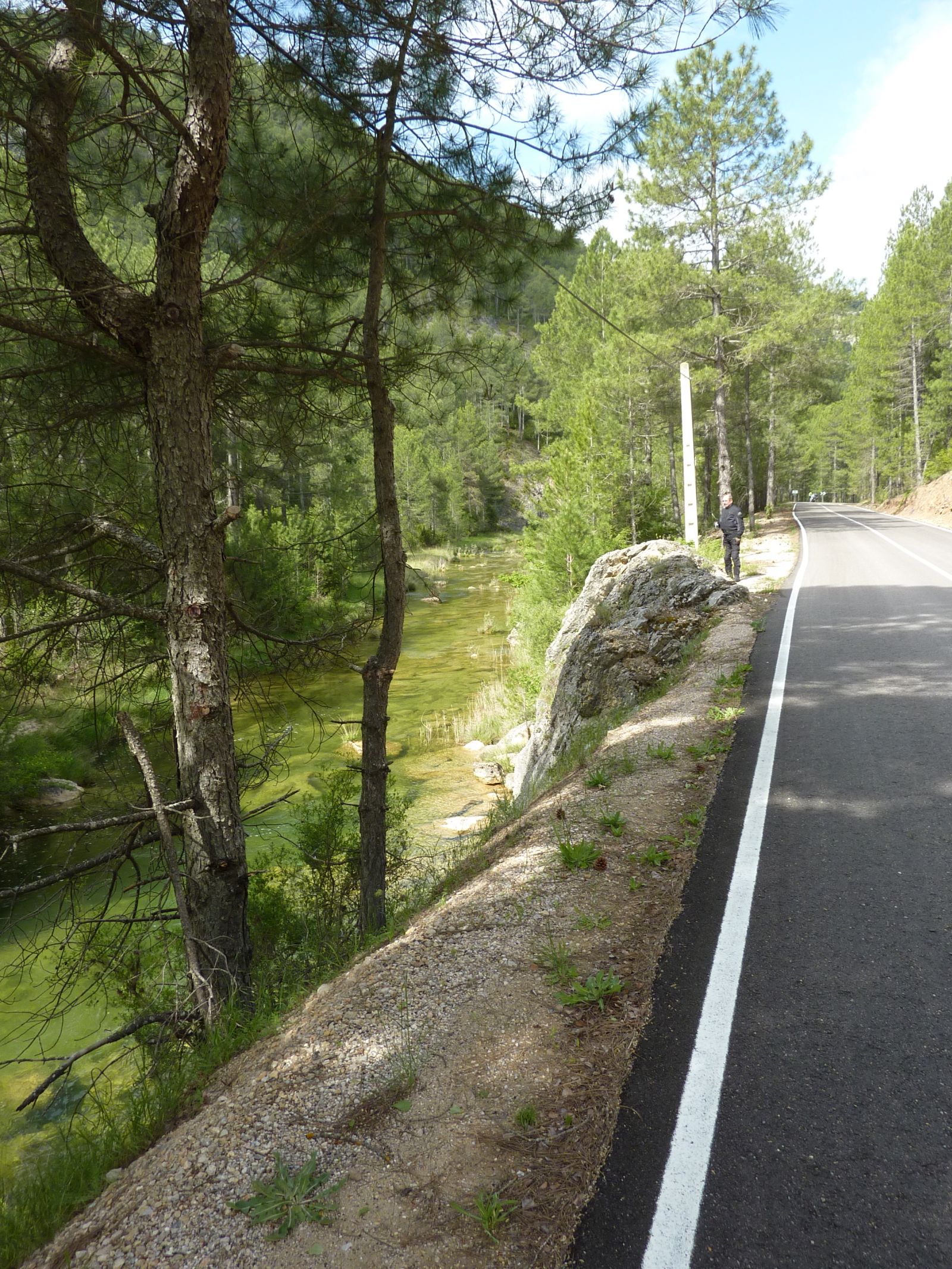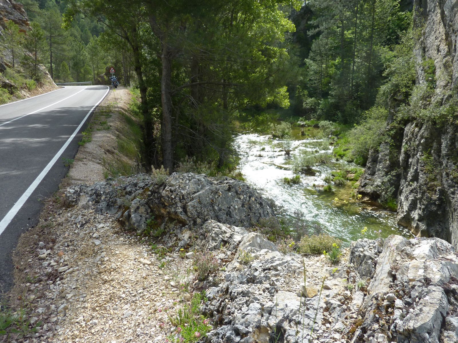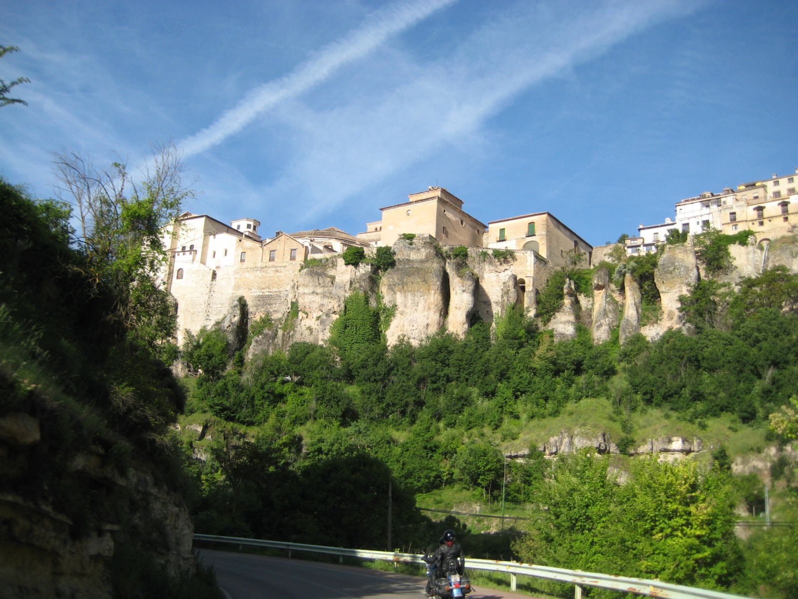 Schlussendlich konnten wir uns doch einigermassen gestärkt auf die Bikes setzen und losfahren. Zu Beginn fuhren wir noch hoch über dem Rio Huécar auf dem Felsplatteau in die Schlucht hinein um dann dem Fluss folgende im Tal wieder nach Cuenca zu gelangen. Wir hielten zuerst nordwärts, denn ich kannte da von meiner Tour im 1999 eine schöne Strecke, die durch die Canyons der Flüsse Guadiela und Escabas führt. In Torralba wurden die fehlenden Kaffees vom Frühstück nachgeholt und weiter ging dien Fahrt zu den Canyons.