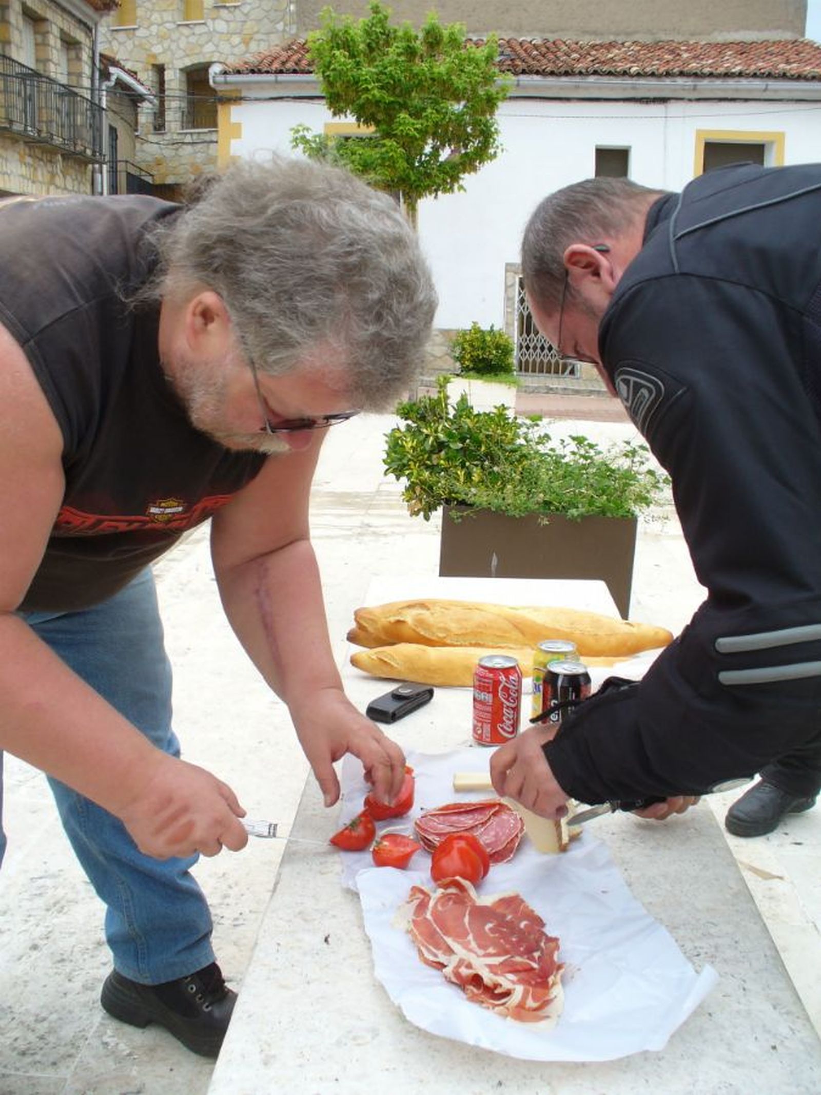 Die Strasse ist in einem sehr guten Zustand und wir konnten schön zügig durch die Kurven cruisen. In Las Majadas war der Mittagshalt in einem mir bekannten Hotel/Restaurant vorgesehen, doch diese hatte leider geschlossen. In den kleinen Gassen des Ortes fanden wir aber ein Bäckerei und einen 'Tante Emmaladen' wo wir unsere Verpflegung einkaufen konnten. Diese wurde dann am Dorfplatz zubereitet und speziell die frischen Tomaten waren ein Genuss. Durch die Sierra las Majadas und an dem Naturdenkmal 'Ventano del Diablo', welches als Western-Kulisse 'Überfall auf Fort Yellowstone' diente fuhren wir weiter zu geplanten Besichtigung der 'Ciudad Encantada'. Für viele bekannte Western-Filme wie u.A. 'der letzte Mohikaner' diente dieser Ort als Filmkulisse.