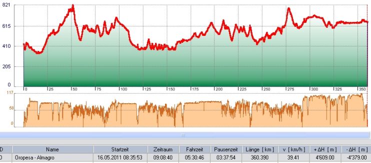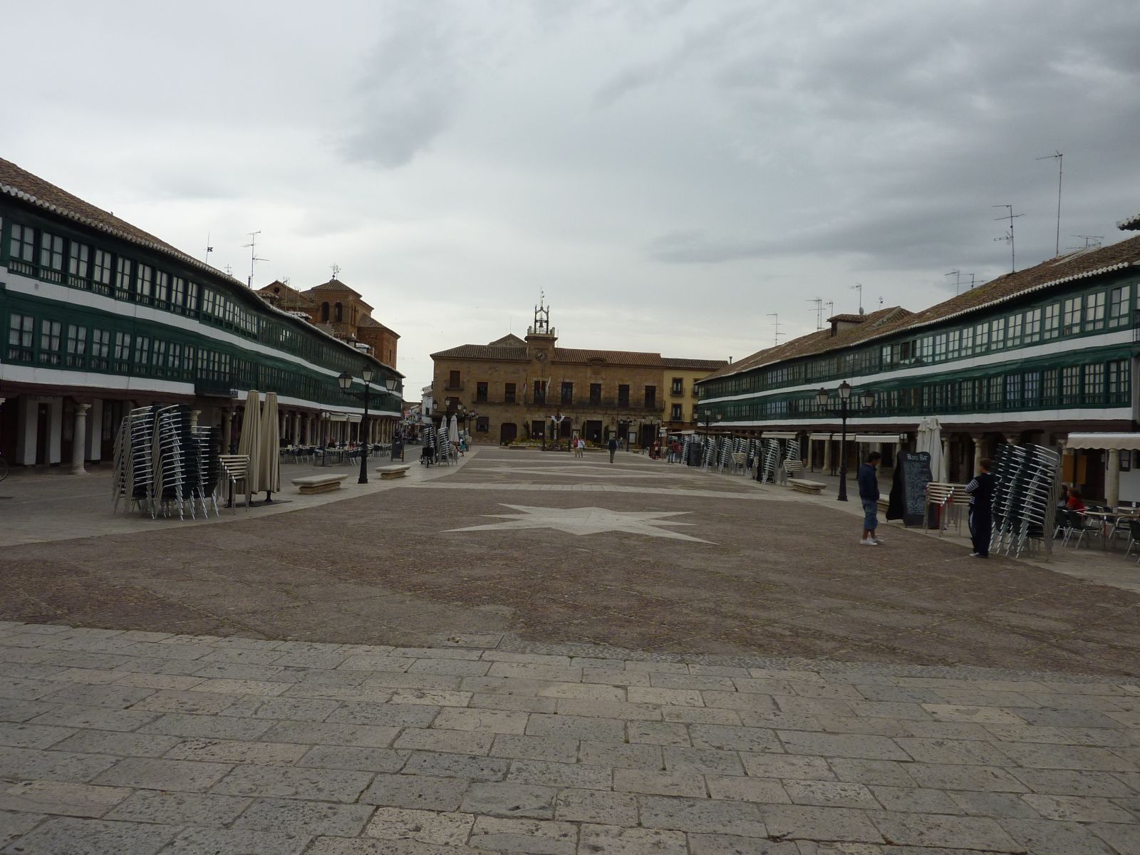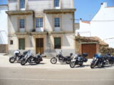 In Herrera del Duque tankten wir noch die Bikes auf und fuhren dann weiter unserem Tagesziel Almagro zu. Kurze Zeit später erreichten wir die Hauptstrasse (N430) welche uns nach Ciudad Real hätte bringen können. Auf dieser Strasse war es aber doch recht eintönig und man musste doch ein ungewohnt hohes tempo fahren, damit es nicht gefährlich wurde. So entschloss ich mich nach ein paar Kilometer südwärts nach Almaden zu fahren und so über wenig befahrene Nebenstrassen nach Almagra zu gelangen. In Almaden tranken wir noch was und dann fuhren wir durch die Weiten der Region Castilla La Mancha immer wieder dem Regen ausweichen zu unserem Hotel 'Retiro del Maestre' in Almagro.