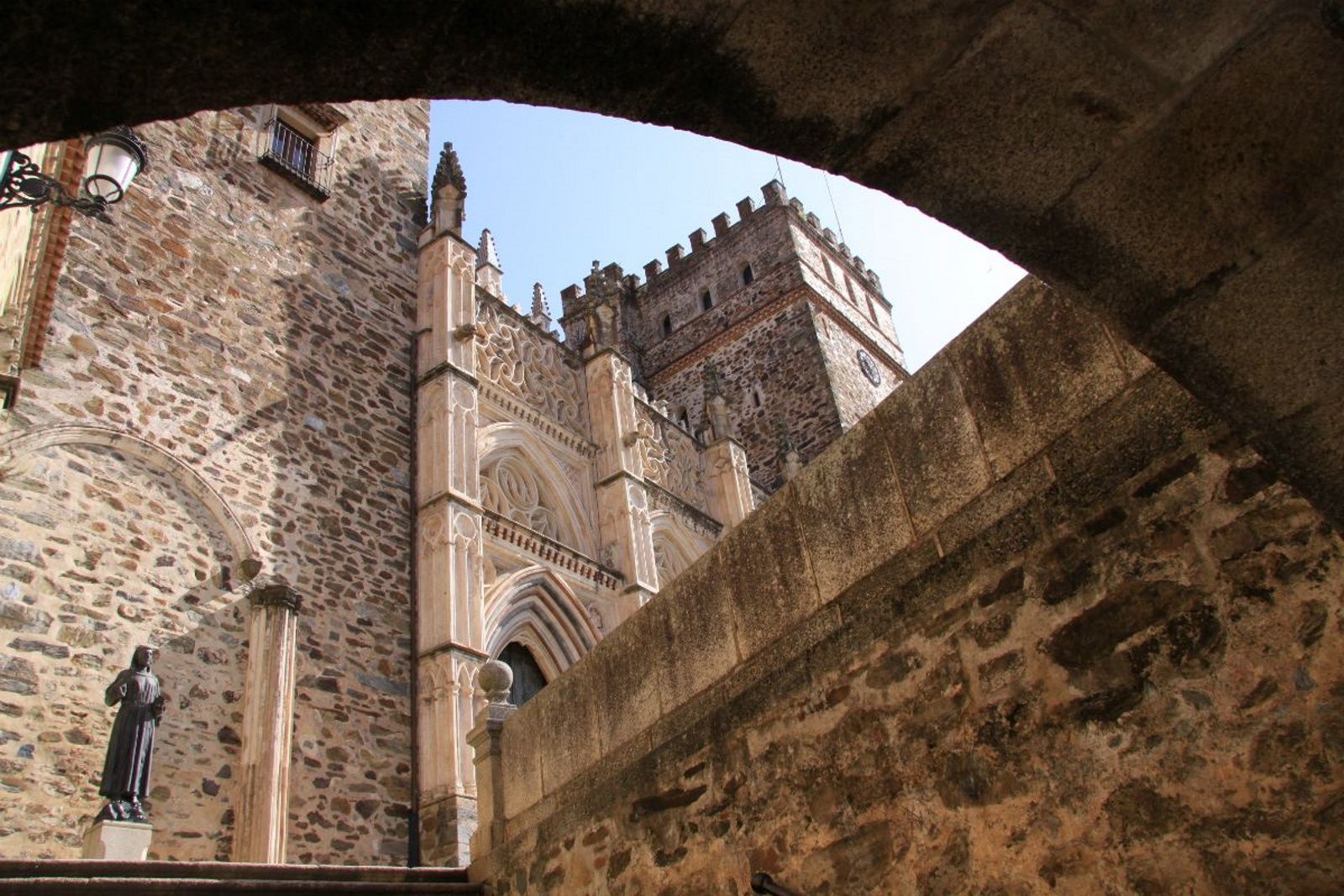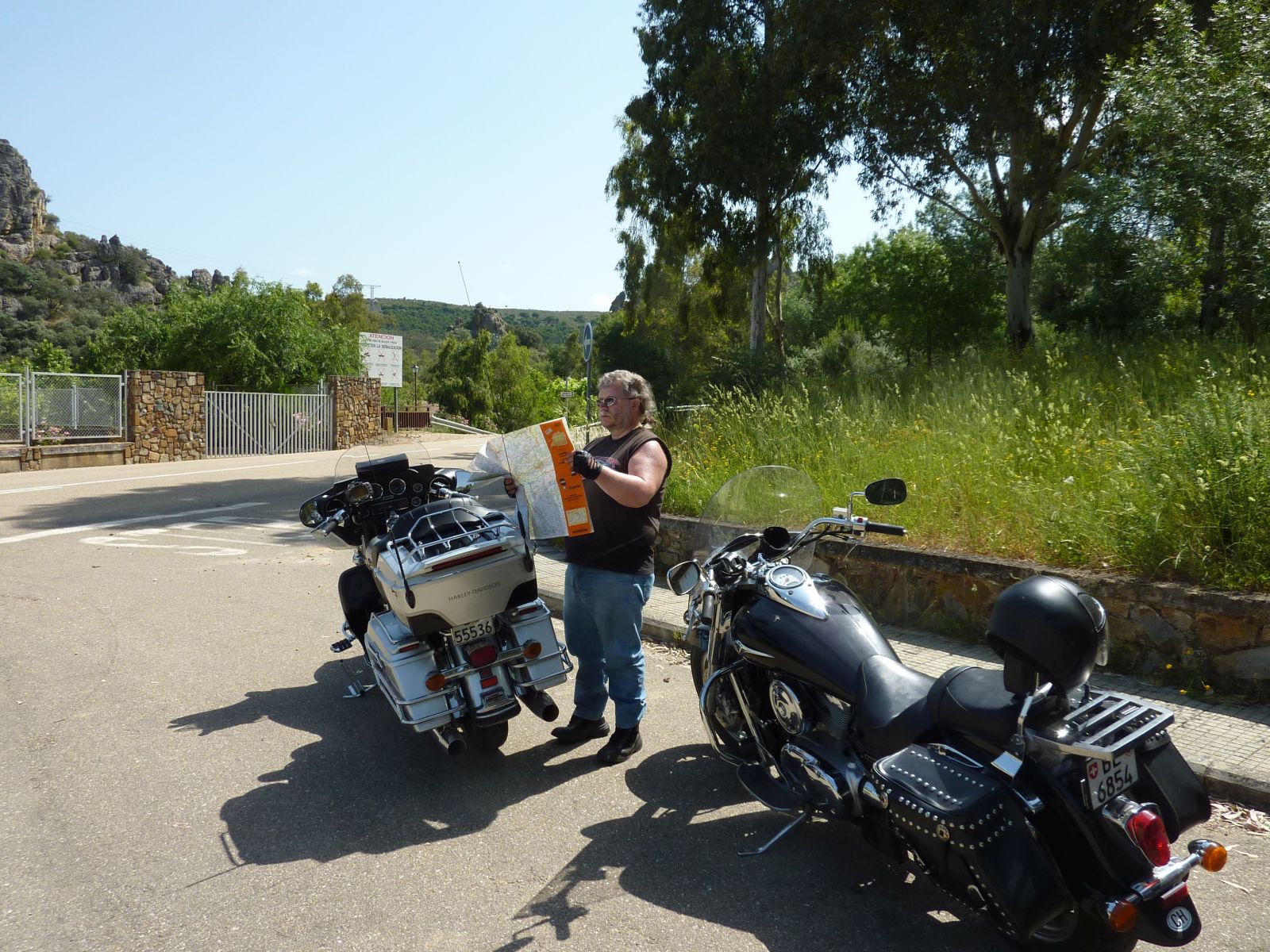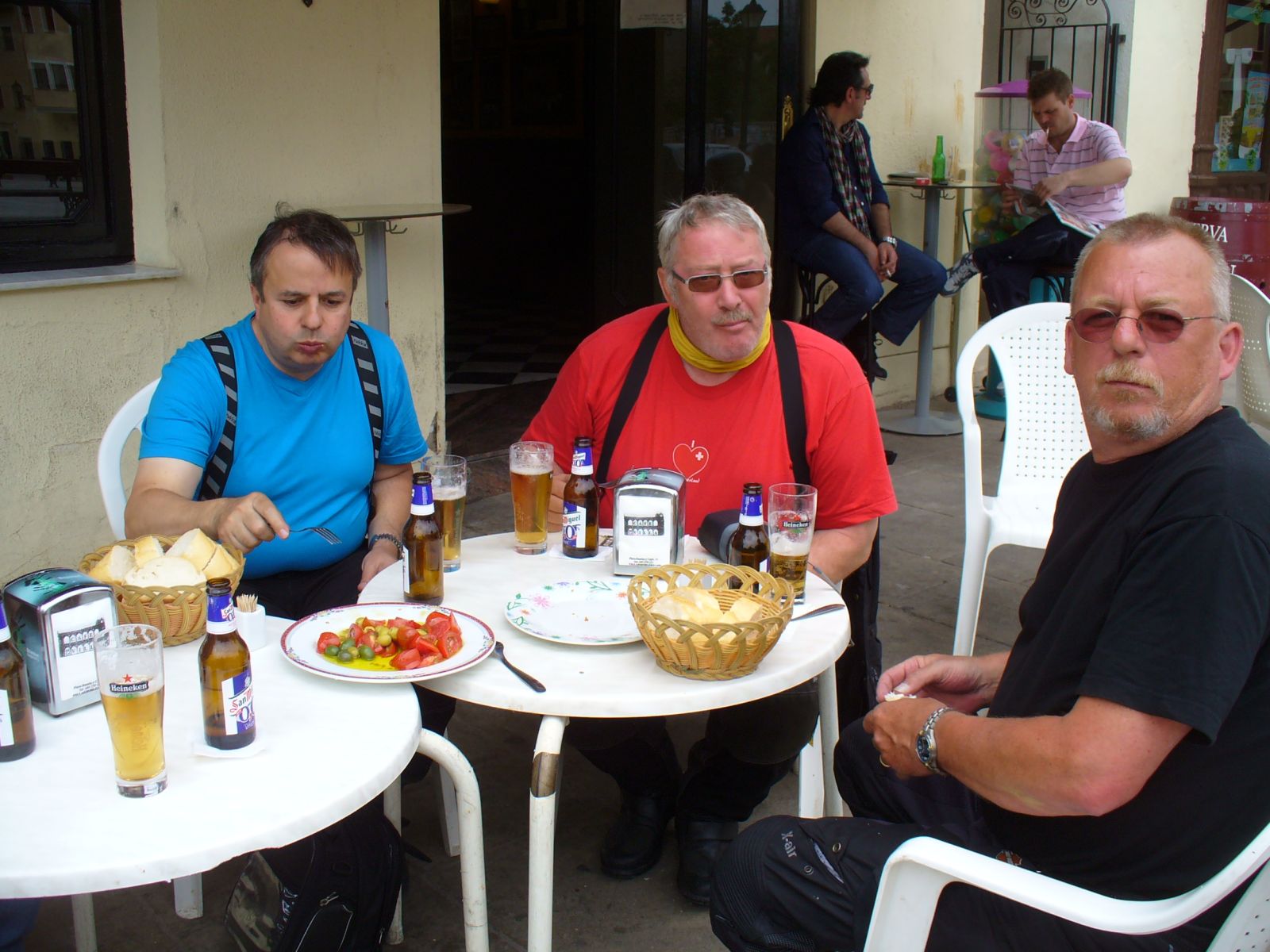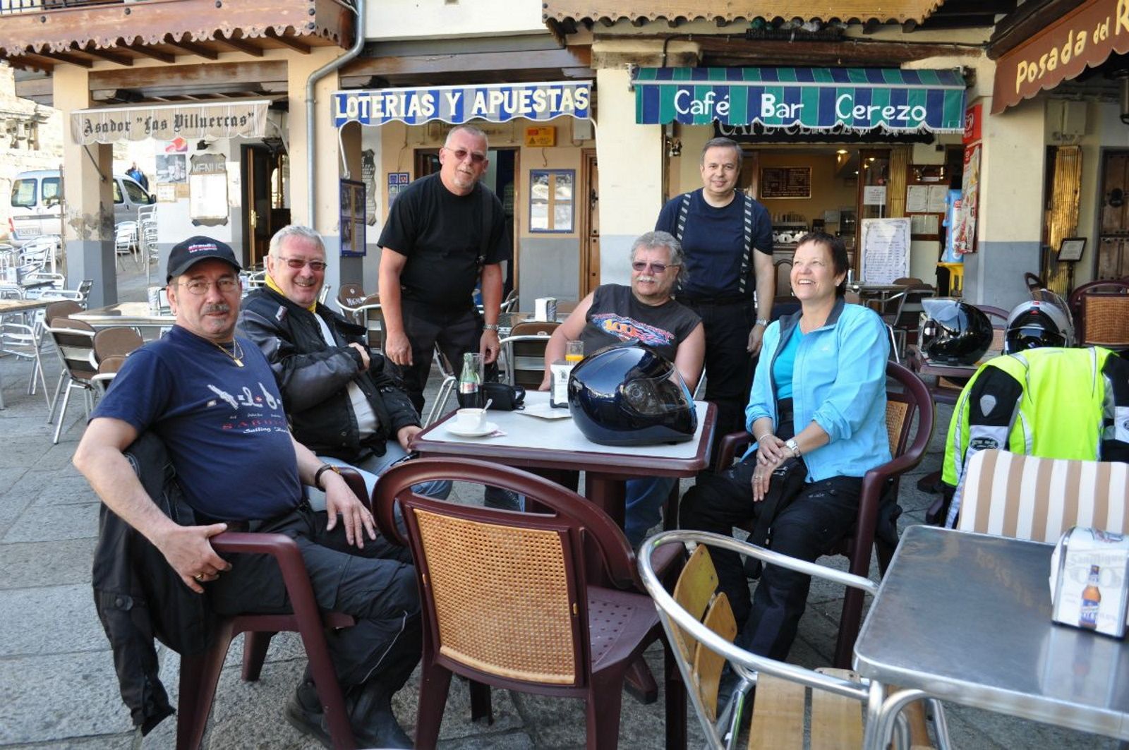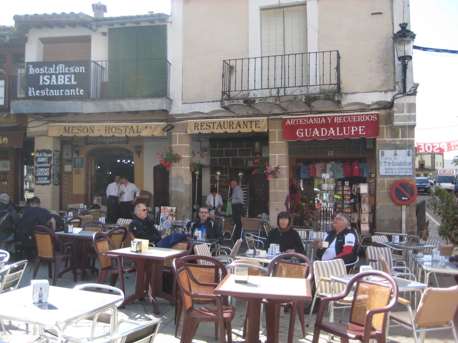 Wir fuhren also südwärts durch die Extremadura und über den Puerto de San Vicente erreichten wir Guadalupe. Kari mit seiner Gruppe war schon da und erklärte mir wo wir in der Nähe des Hauptplatzes parkieren konnten. Bikes abgestellt und dann zurück auf den Platz wo man darauf achten musste, welche Stühle man benutzte, denn die waren streng nach ca. 5 Restaurants aufgeteilt. Wir machten hier genügend Rast damit alle auf ihre Rechnung kamen, sei es mit Fotografieren oder einem zweiten Kaffee.