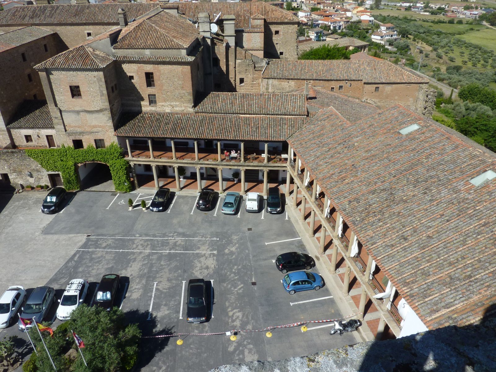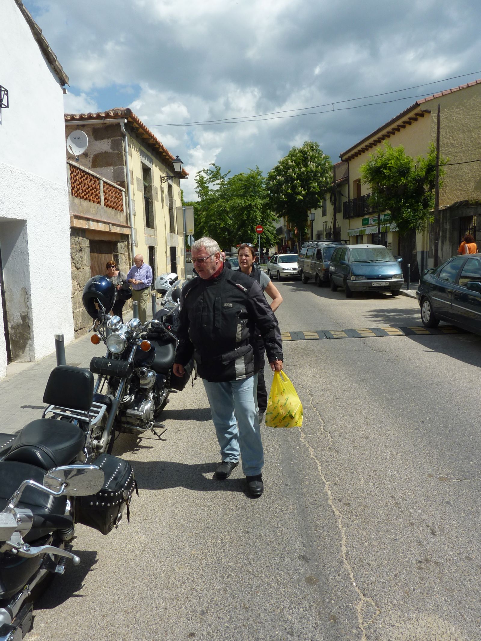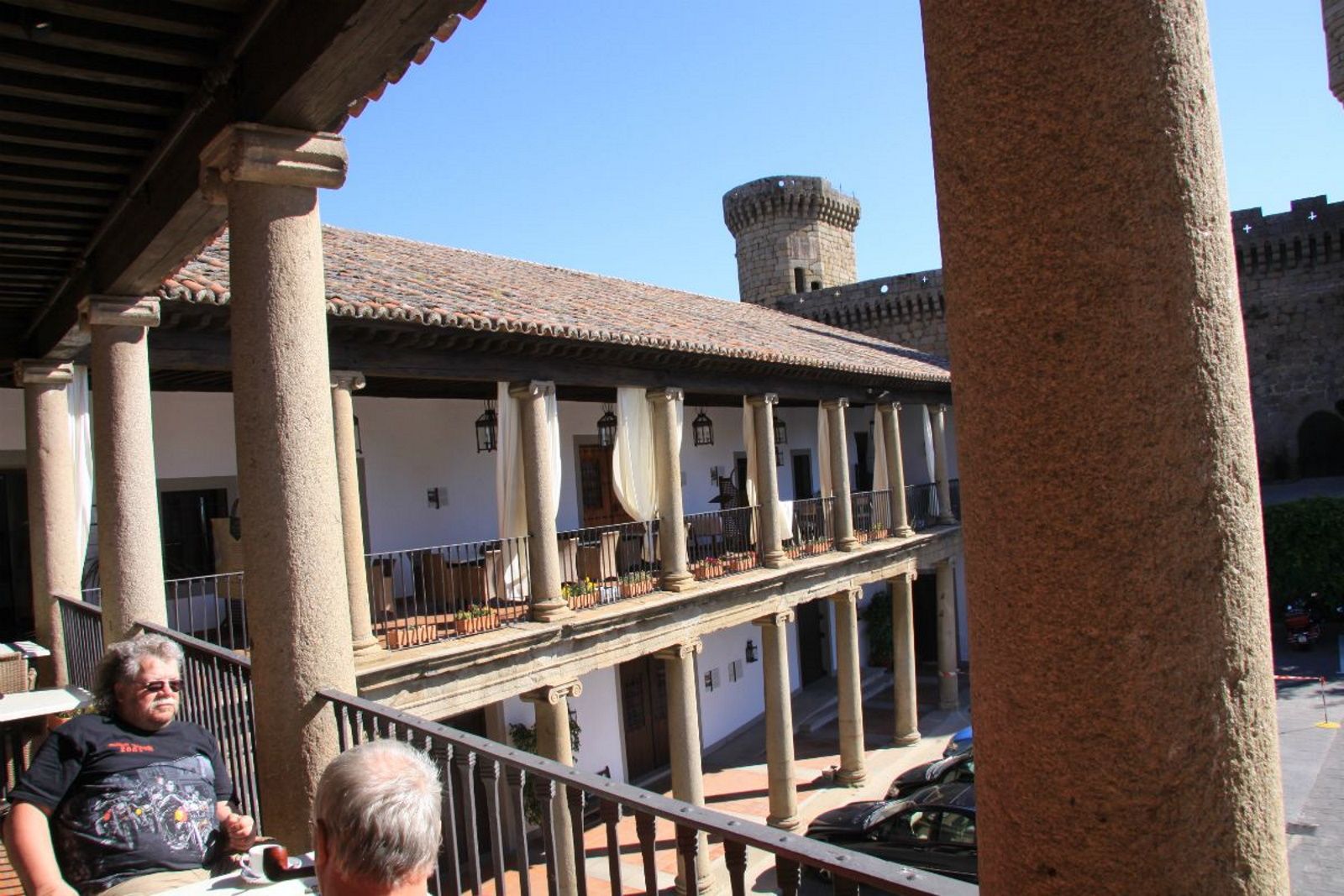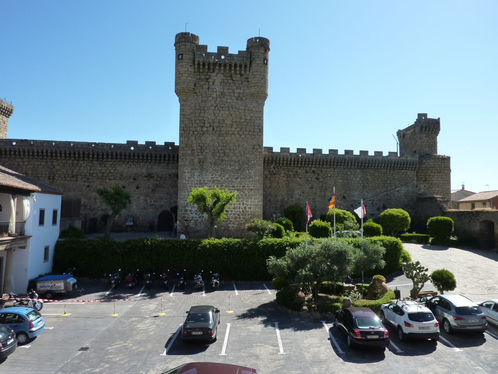 Ich studierte also das Navi und die Karten und sah, dass die Naturstrasse ca. zwei Kilometer weiter auf eine normale Strasse traf. Ich erklärte Stefan wo er durchfahren musste und wir uns dann wieder treffen sollten. Er fuhr also zurück und Albert und ich weiter, bis zu der abgemachten Kreuzung. Hier warteten wir recht lange und niemand kam. So entschlossen wir uns zurückzufahren : Albert die Naturstrasse und ich die Strasse auf welche die Andern zu uns kommen sollten. Den Albert traf ich dann wieder da wo das 'Bachbett' begann aber von den Andern war nichts zu sehen. Also zurück bis zum Spielplatz, aber auch da nichts. Wir fuhren dann wieder zum abgemachten Treffpunkt, da erhielt Albert von Edith ein SMS, welche besagte dass sie auf einer andern Route nach Oropesa fuhren. Also fuhren wir zu zweit südwärts durch die Ausläufer der Sierra de Gredos auf die Autobahn nach Oropesa wo wir doch trocken ankamen und uns der Parador von Oropesa für die nächsten zwei Nächte als Gäste erwartete.