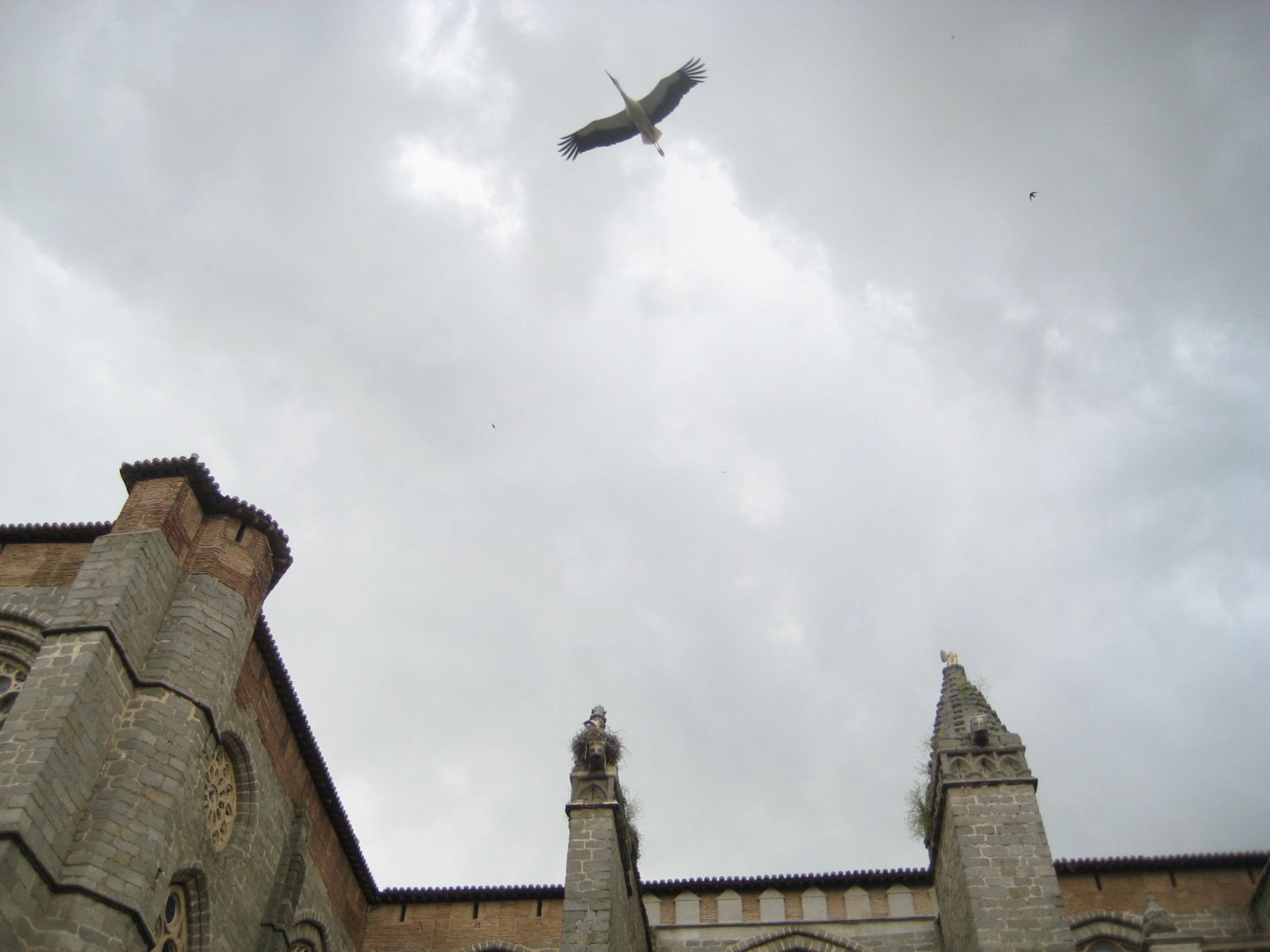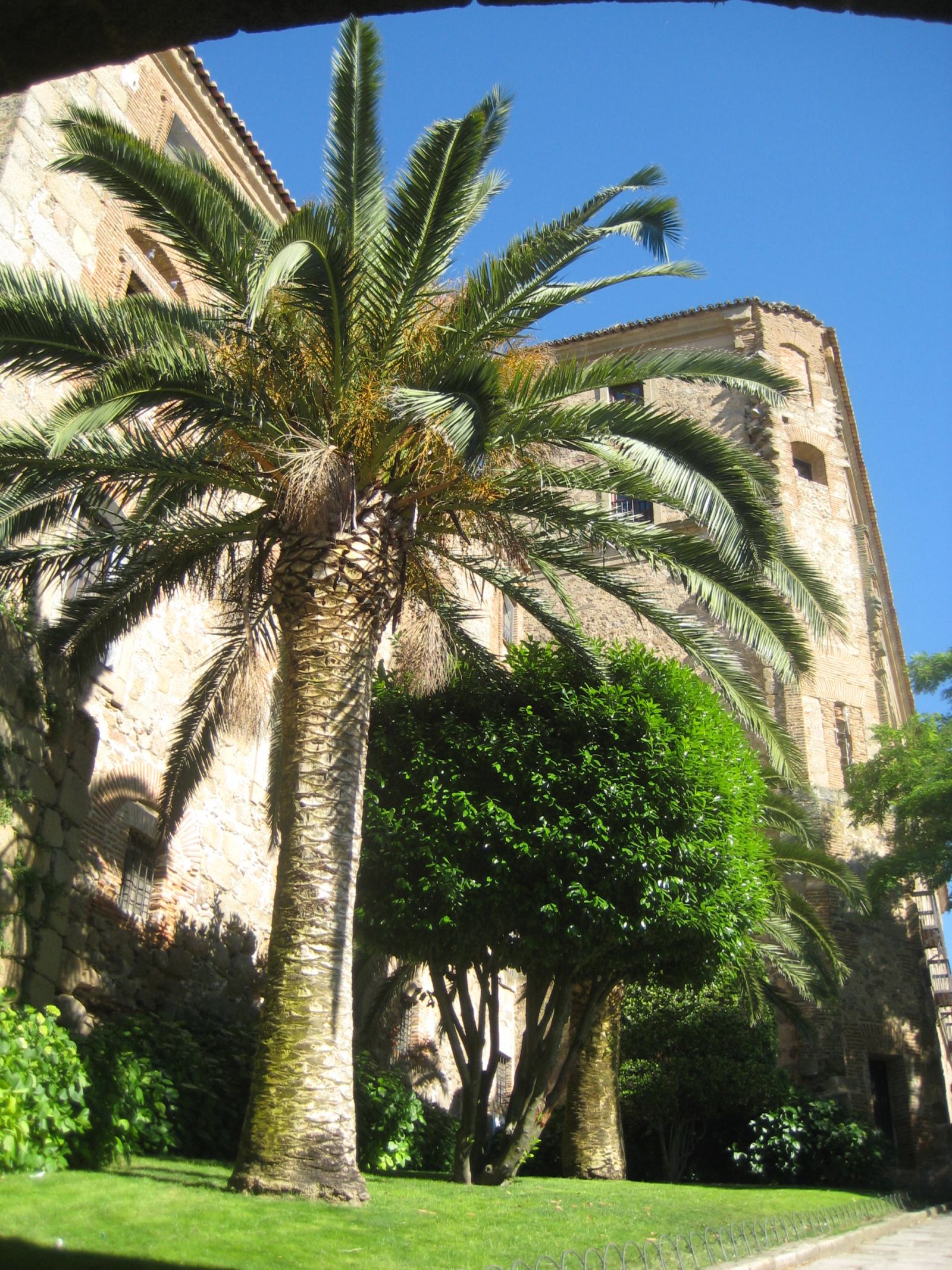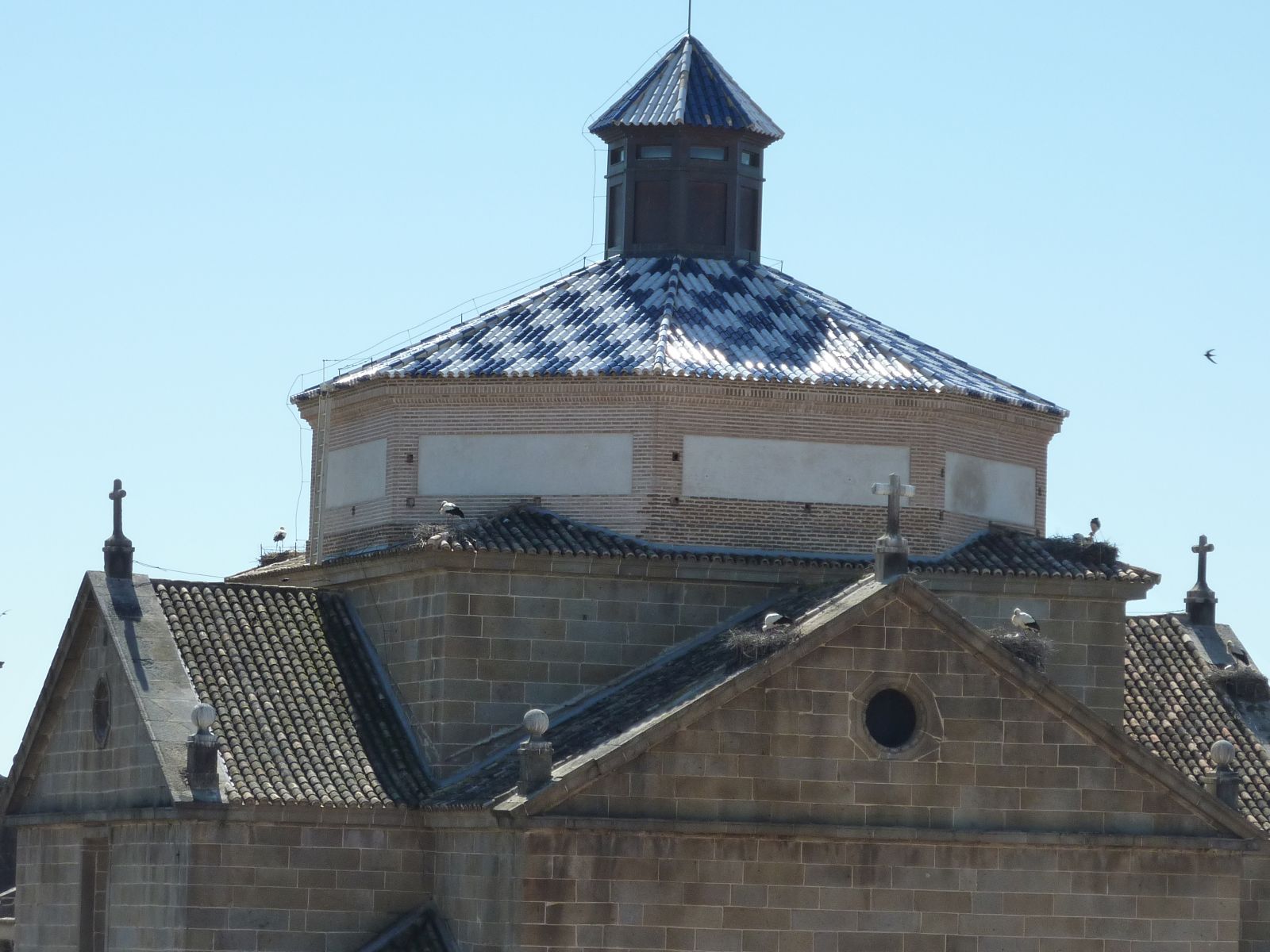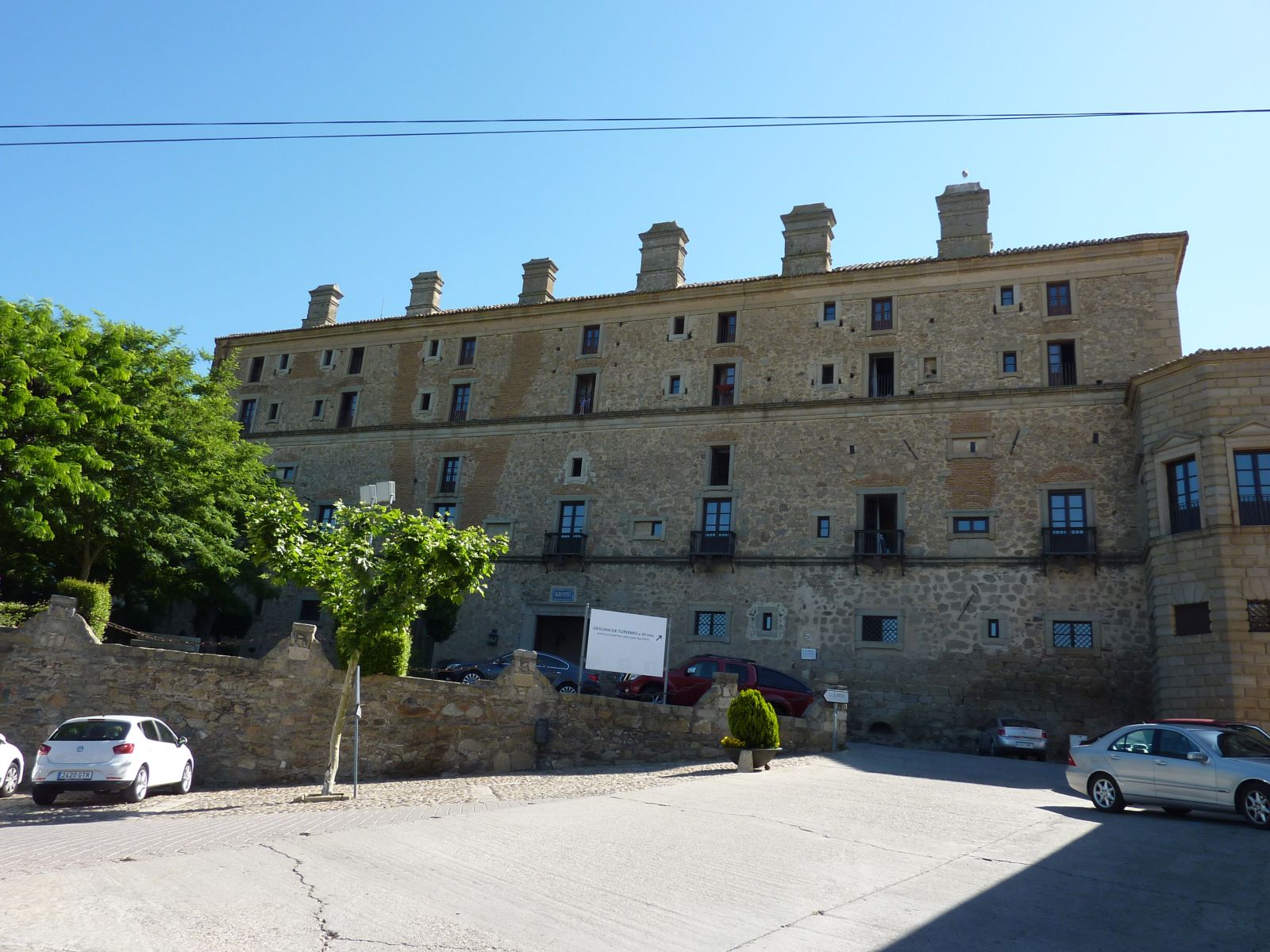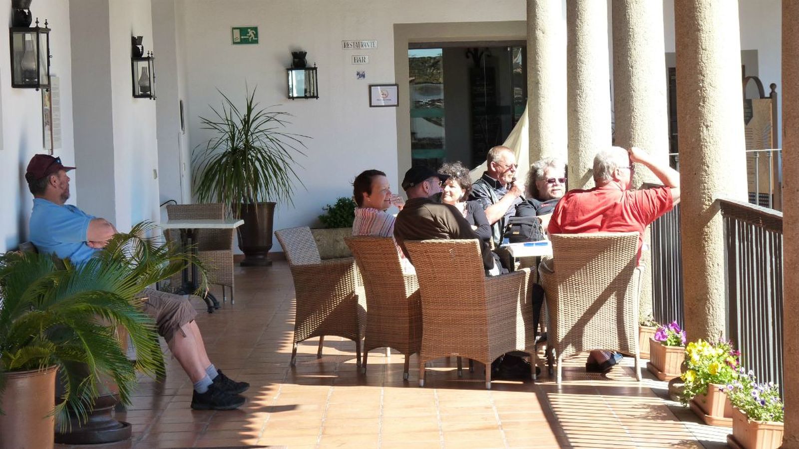 Ich studierte also das Navi und die Karten und sah, dass die Naturstrasse ca. zwei Kilometer weiter auf eine normale Strasse traf. Ich erklärte Stefan wo er durchfahren musste und wir uns dann wieder treffen sollten. Er fuhr also zurück und Albert und ich weiter, bis zu der abgemachten Kreuzung. Hier warteten wir recht lange und niemand kam. So entschlossen wir uns zurückzufahren : Albert die Naturstrasse und ich die Strasse auf welche die Andern zu uns kommen sollten. Den Albert traf ich dann wieder da wo das 'Bachbett' begann aber von den Andern war nichts zu sehen. Also zurück bis zum Spielplatz, aber auch da nichts. Wir fuhren dann wieder zum abgemachten Treffpunkt, da erhielt Albert von Edith ein SMS, welche besagte dass sie auf einer andern Route nach Oropesa fuhren. Also fuhren wir zu zweit südwärts durch die Ausläufer der Sierra de Gredos auf die Autobahn nach Oropesa wo wir doch trocken ankamen und uns der Parador von Oropesa für die nächsten zwei Nächte als Gäste erwartete.