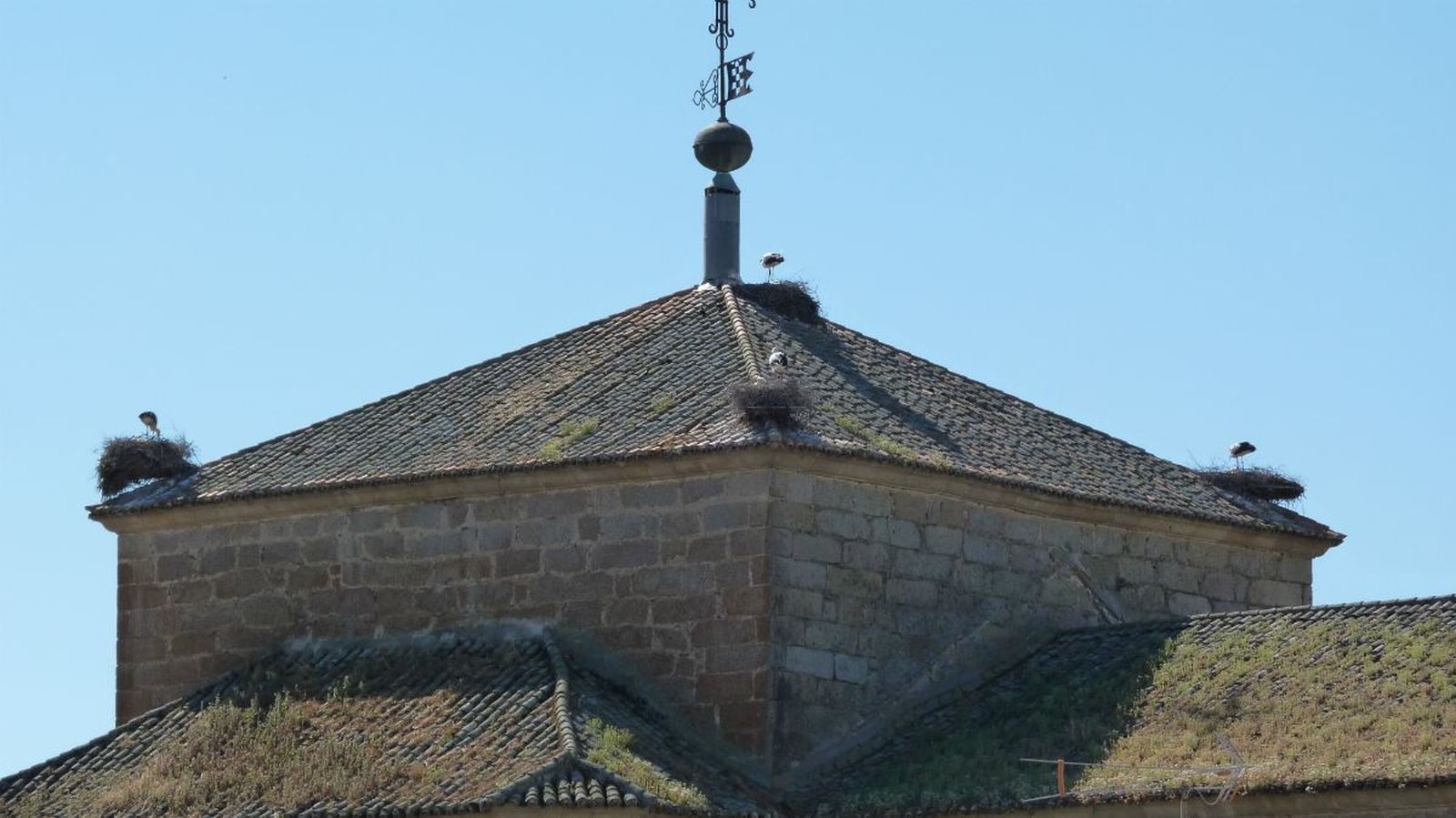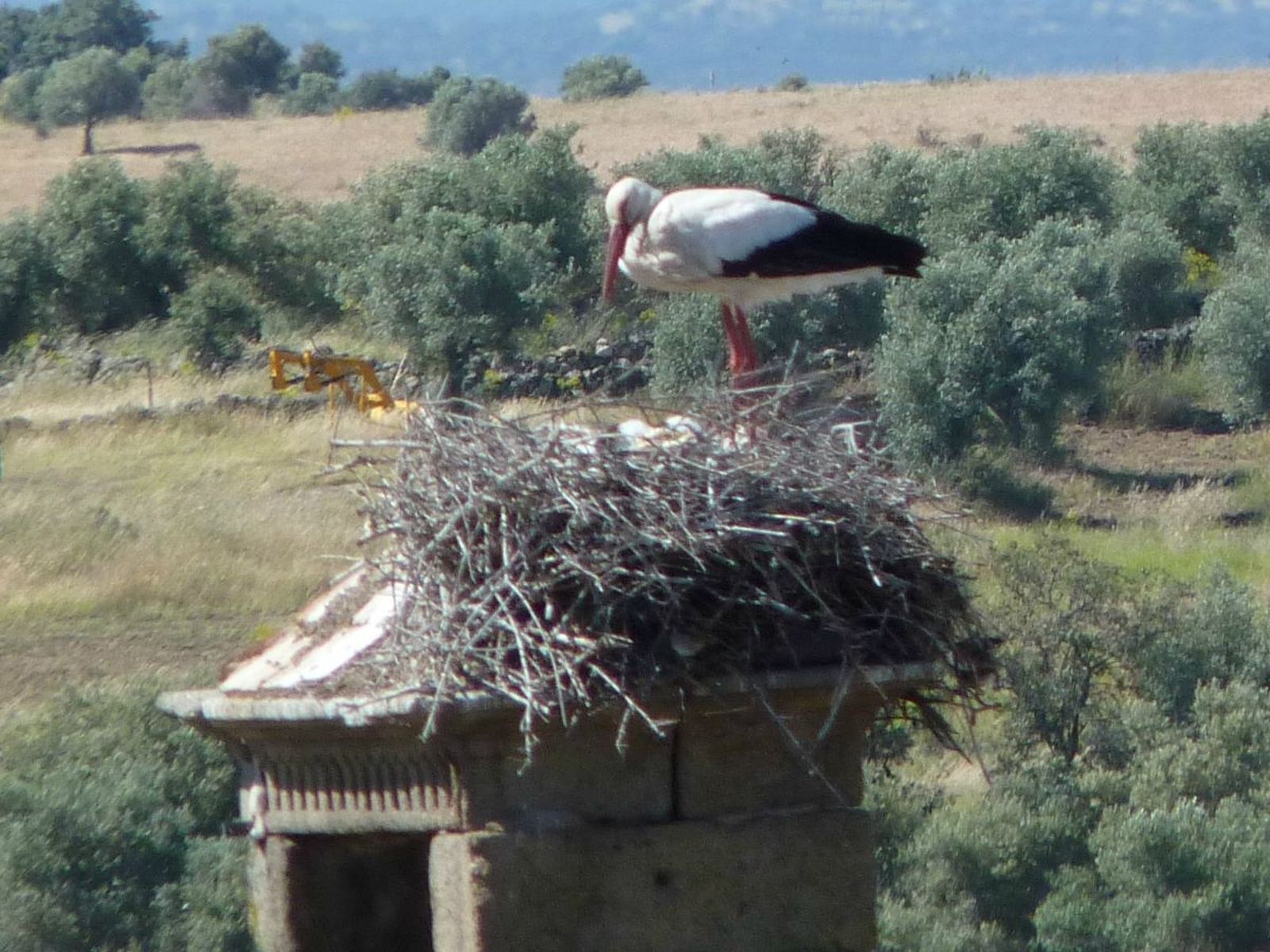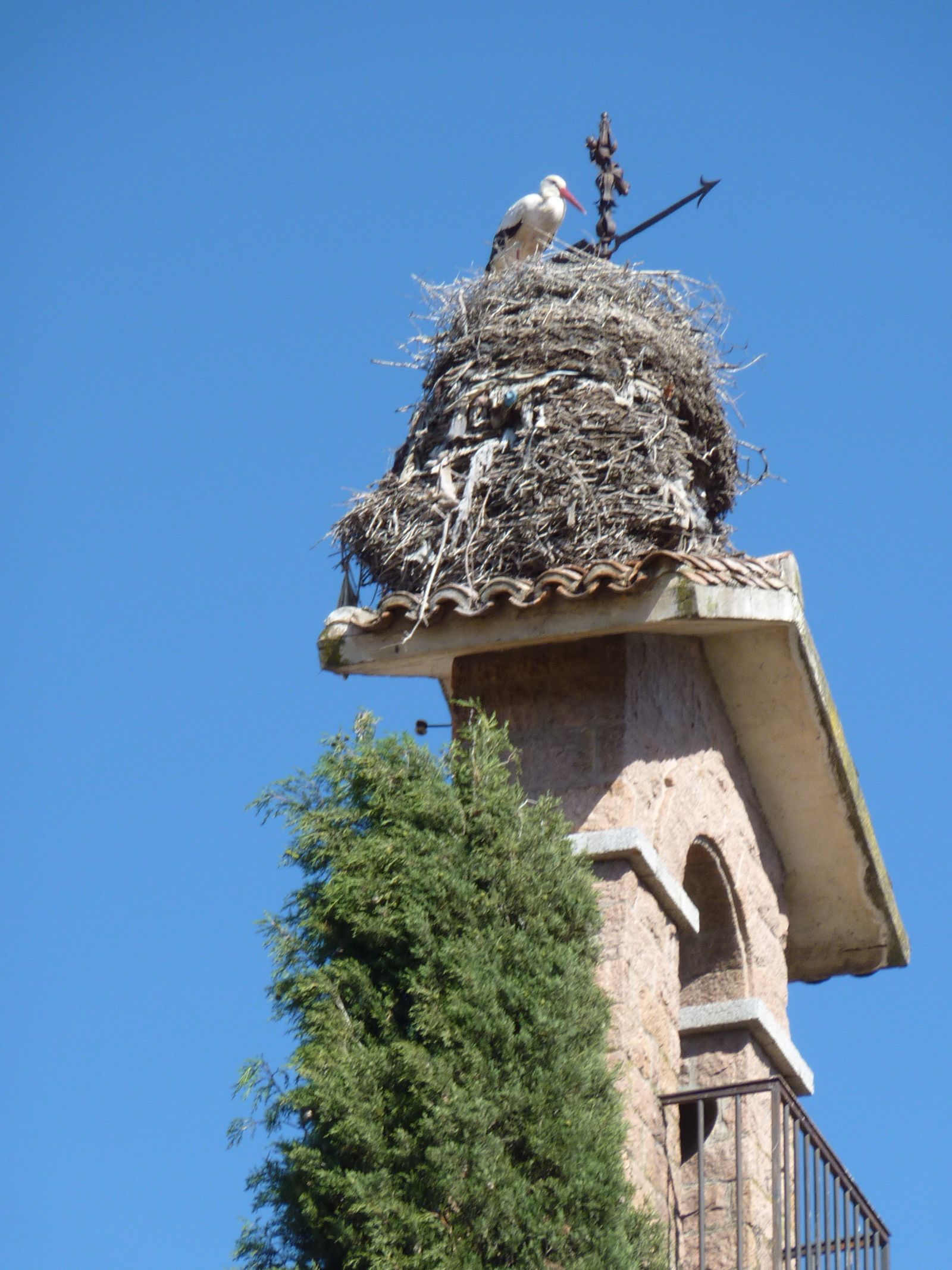 Am Embalsa de San Juan wollte ich eigentlich unseren Mittagsrast machen, doch ausser einer Staumauer war nicht viel zu sehen und wir fuhren weiter Richtung Sierra de Gredos. Auf dem Weg die Sierra von der Nordseite her zu befahren begann es leicht zu regnen und als wir etwas weiter sehen konnten waren die Berge total voller schwarzer Wolken. Zum Glück hatte es da bald einen Kreisverkehr, so dass wir 360 Grad wenden konnten und zurück nach San Martin fuhren. Wir blieben also auf der Südseite der Sierra wo das Wetter noch trocken aussah und nahmen dann unser Mittagessen auf einem Spielplatz mit Tisch und Bänken ein.