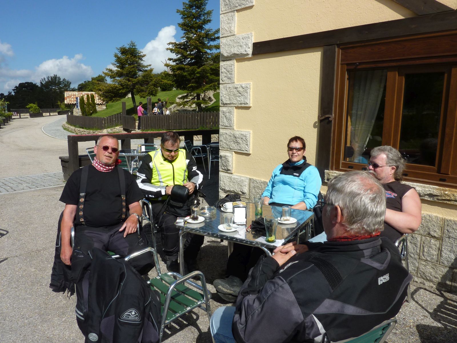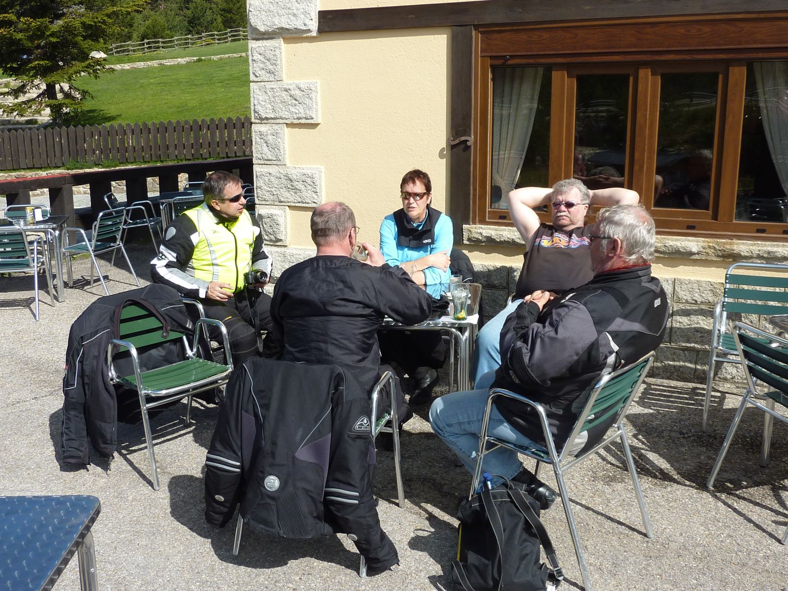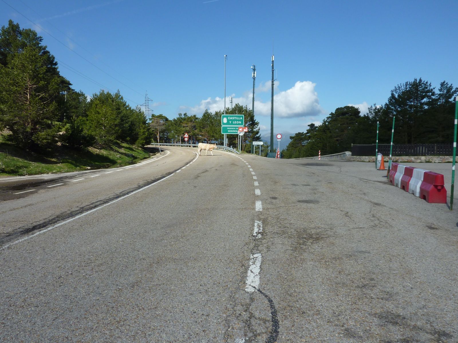 Da Vorgestern die Fahrten durch die verschiedenen Sierras ins Wasser fielen, hofften wir heute auf gute Verhältnisse bei der Durchquerung der Sierra de Guaderrama nördlich von Madrid und der Sierra de Gredos nördlich von Oropesa. Zuerst führte uns die Route noch entlang von Feldern bevor der erste Pass, der Puerto de Navafria uns in die Sierra de Guaderrama hinein führte. Nach dem Pass erreichten wir den Pinilla Stausee und fuhren dann westwärts zum Puerto de Cotos hinauf wo wir uns ein Kaffee gönnten. Hier hatte es recht viele Wanderer, die wohl den Naturalpark von Peñalara besuchten.