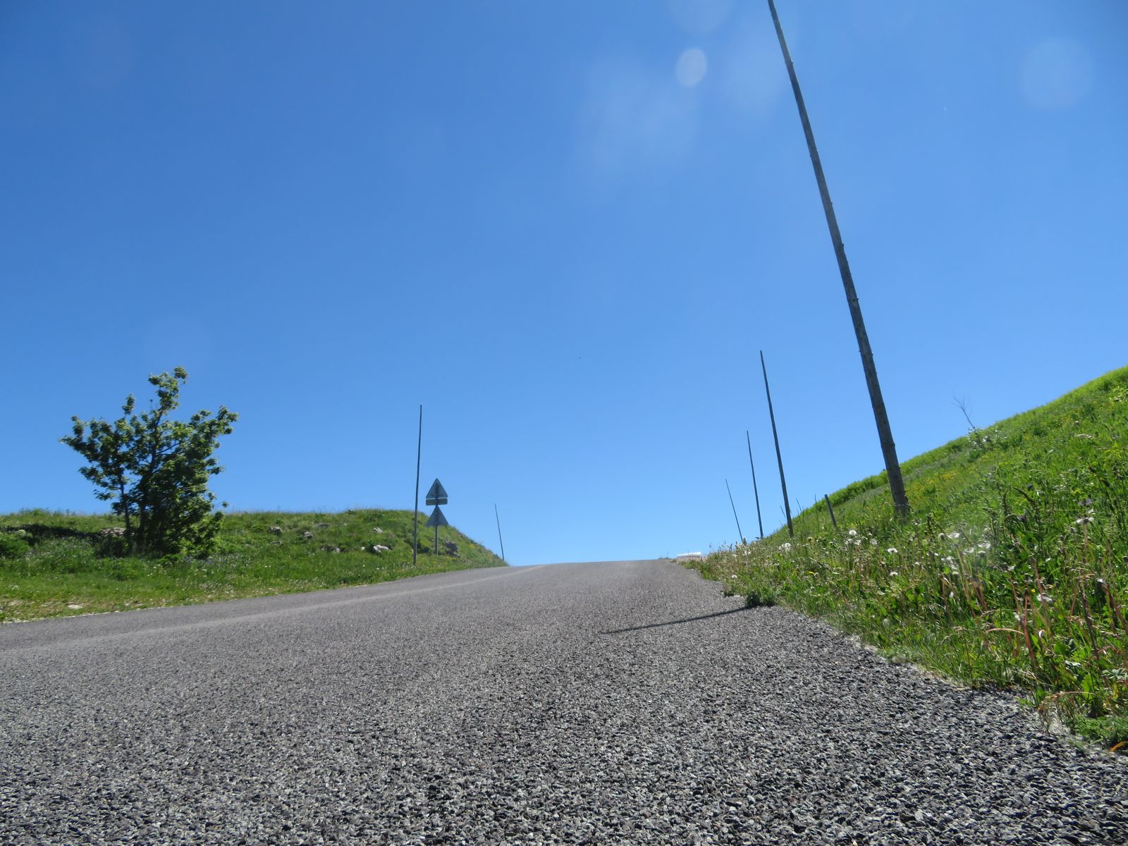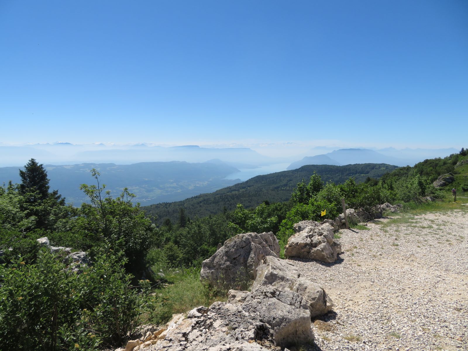 Danach ging es südwärts auf kleinen Nebenstrassen zum Col de la grand Colombier hinauf, wo man eine sensatinelle Aussicht gegen den Mont Banc und Lac  du Bouget hat. Weiter führte mich die Route über Krete durch die heiseen Kurven bei den Lacets du Grand Colombier nach Chenaz, einem klenen Dorf am Canal de Saviere.